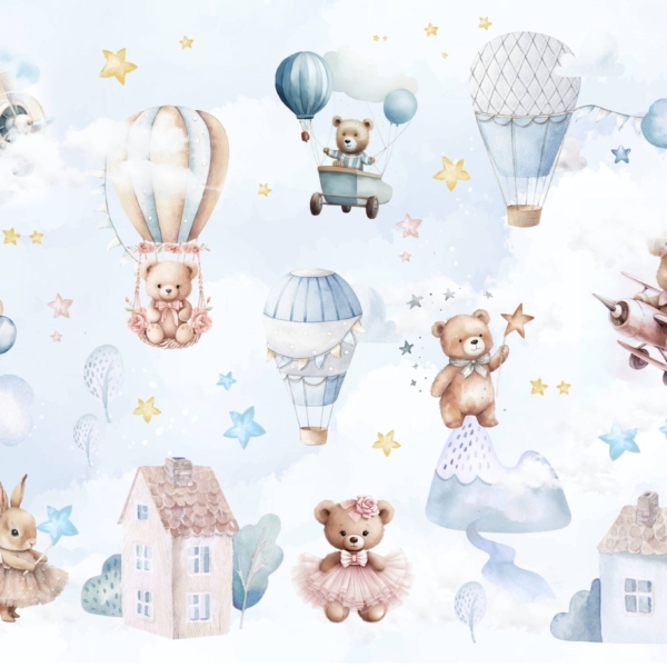 - BERNIUKAS, Fototapetai, GYVŪNAI, Kambariui, Mėlynos spalvos atspalviai, Spalvos, Stilius, Vaikams, Vaikiškas, VAIKUI