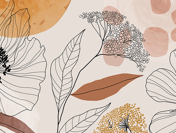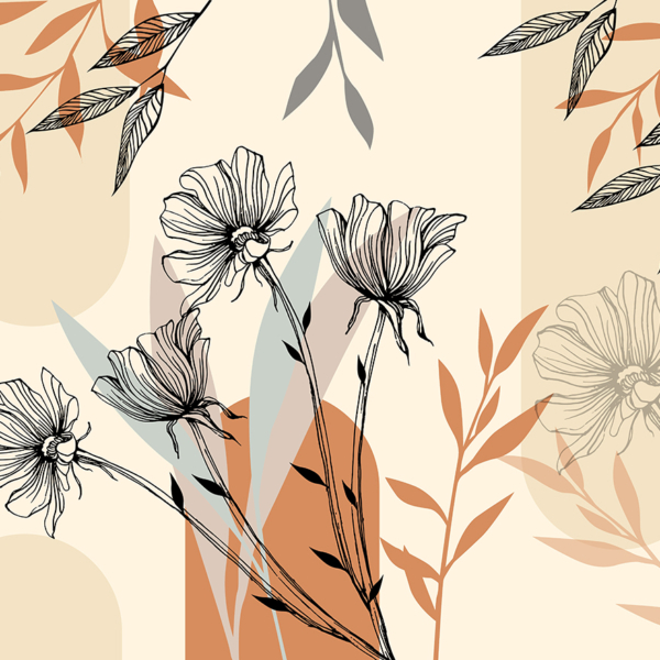 - ATOGRĄŽŲ LAPAI, BIURUI, Boho, Fototapetai, FRESKA, GĖLĖS, Kambariui, MIEGAMAJAM, Rudos ir smėlio spalvos atspalviai, SALONUI, Spalvos, Stilius