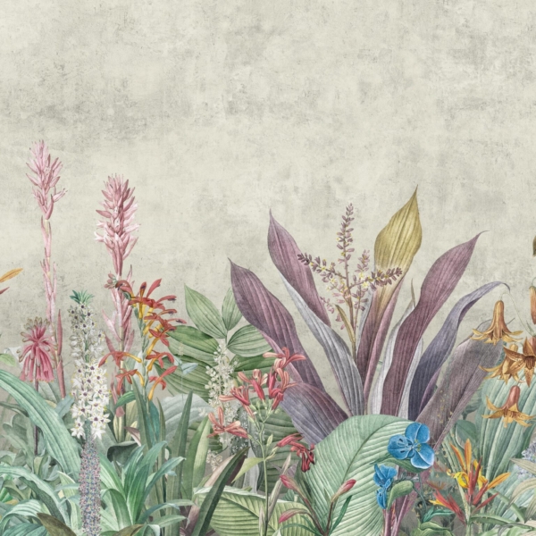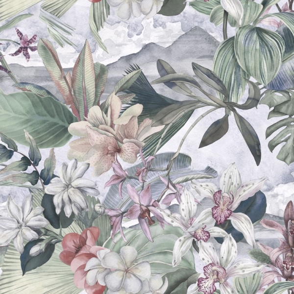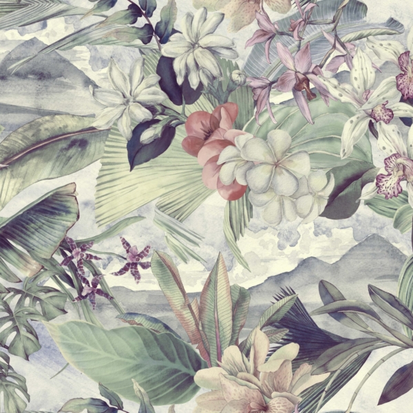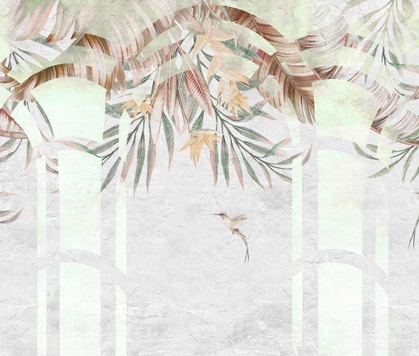 - Atogrąžų, ATOGRĄŽŲ LAPAI, Fototapetai, GAMTA, GĖLĖS, GYVŪNAI, Kambariui, MIEGAMAJAM, Pilkos spalvos atspalviai, Rožiniai spalvos atspalviai, SALONUI, Spalvos, Stilius