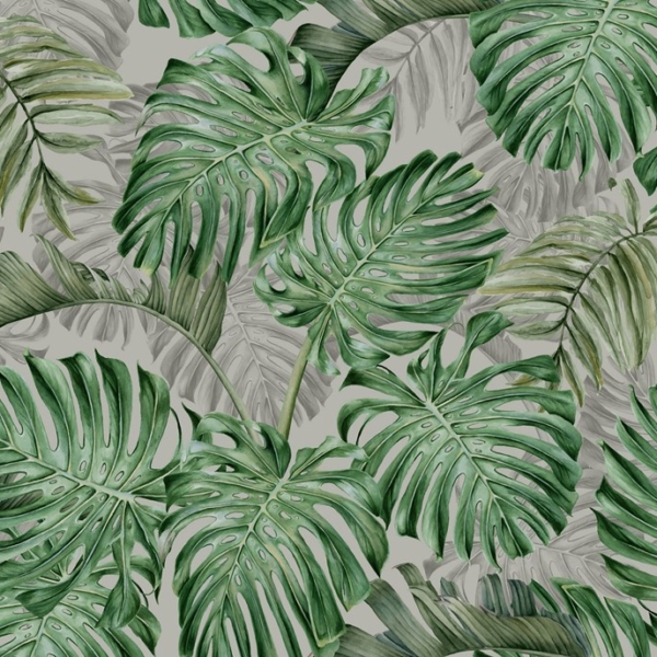 - Atogrąžų, ATOGRĄŽŲ LAPAI, Fototapetai, GAMTA, Kambariui, MIEGAMAJAM, Pilkos spalvos atspalviai, SALONUI, Spalvos, Stilius, Žalios spalvos atspalviai