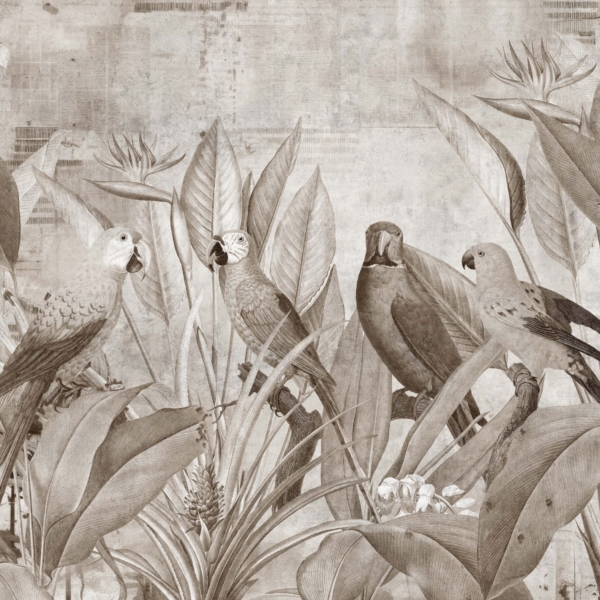 - Atogrąžų, ATOGRĄŽŲ LAPAI, Fototapetai, GYVŪNAI, Kambariui, MIEGAMAJAM, Pilkos spalvos atspalviai, SALONUI, Spalvos, Stilius, VAIKUI
