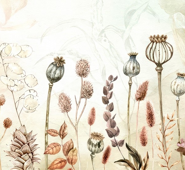 - ATOGRĄŽŲ LAPAI, BIURUI, Boho, Fototapetai, GAMTA, GĖLĖS, Kambariui, MIEGAMAJAM, Pilkos spalvos atspalviai, PRIEŠKAMBARIUI, Rudos ir smėlio spalvos atspalviai, SALONUI, Spalvos, Stilius