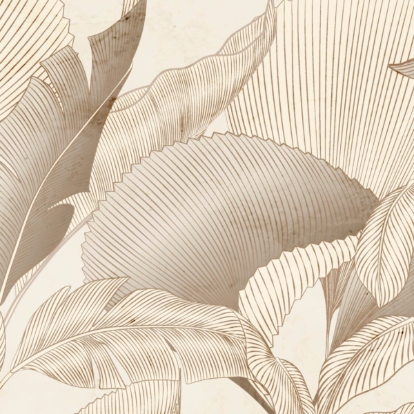 - Atogrąžų, ATOGRĄŽŲ LAPAI, Fototapetai, Kambariui, Loftas, MIEGAMAJAM, Rudos ir smėlio spalvos atspalviai, SALONUI, Spalvos, Stilius