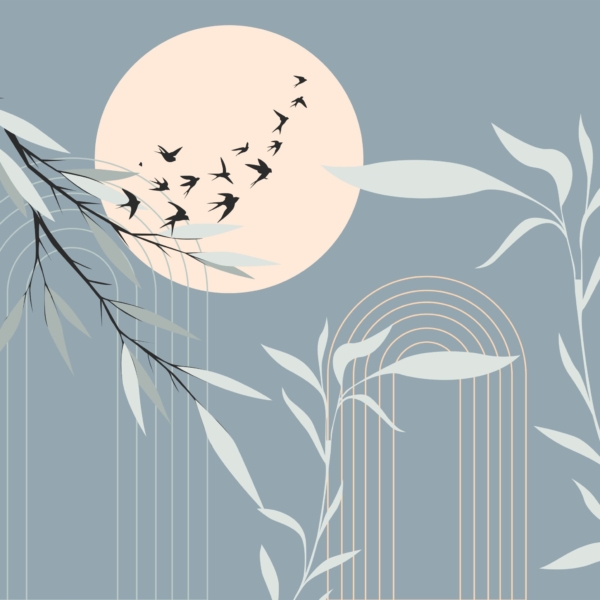 - Boho, DANGUS, Fototapetai, GĖLĖS, Kambariui, Mėlynos spalvos atspalviai, MIEGAMAJAM, SALONUI, Spalvos, Stilius