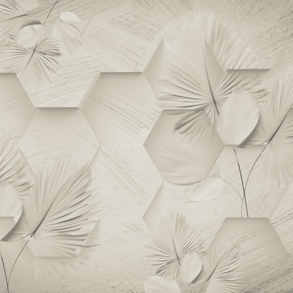 - 3D, Atogrąžų, ATOGRĄŽŲ LAPAI, Aukso ir sidabro spalvos atspalviai, BIURUI, Fototapetai, GAMTA, Kambariui, MIEGAMAJAM, Pilkos spalvos atspalviai, SALONUI, Spalvos, Stilius