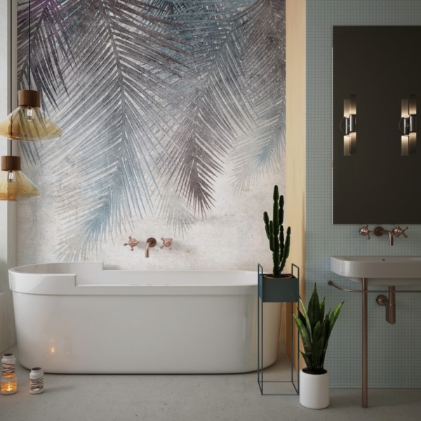 Atspaudai apima įvairias spalvų paletes – prislopintas pastelines ir intensyvias spalvas. Todėl tapetai tiks įvairių stilių vonios kambariams.