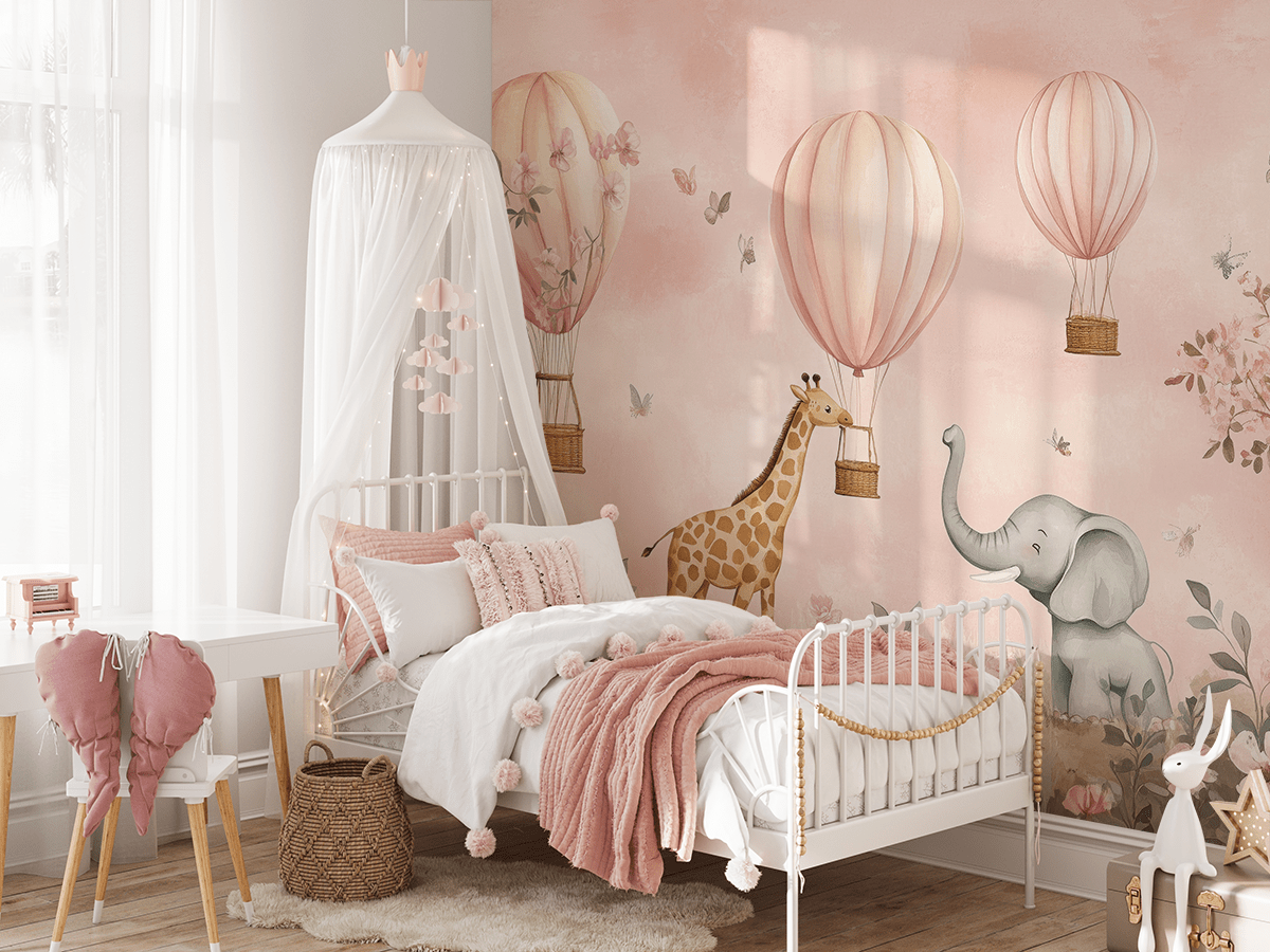 Fototapetas „Safari balionais“ – stebuklinga kelionė, kupina nuotykių ir džiaugsmo vaikams