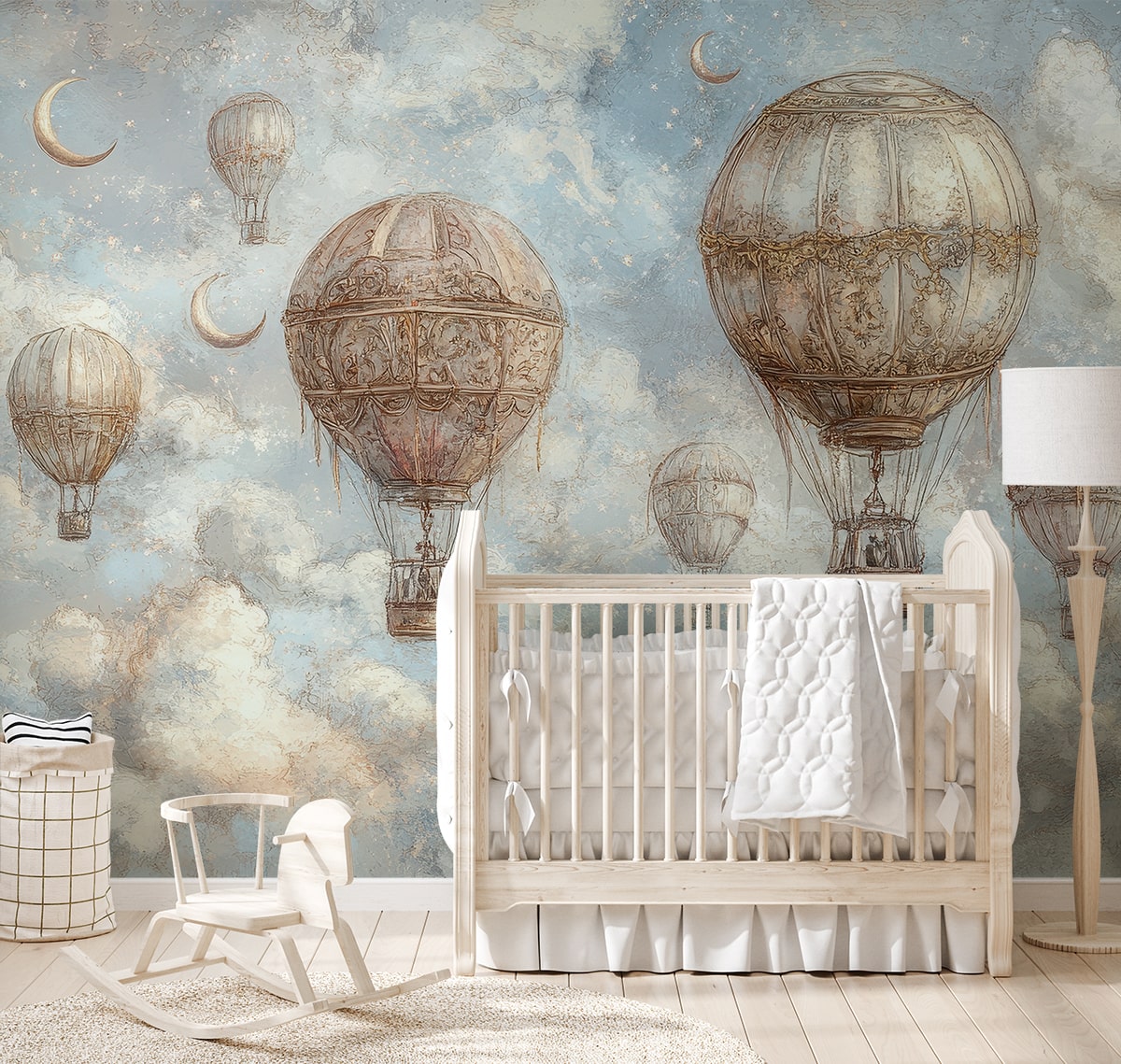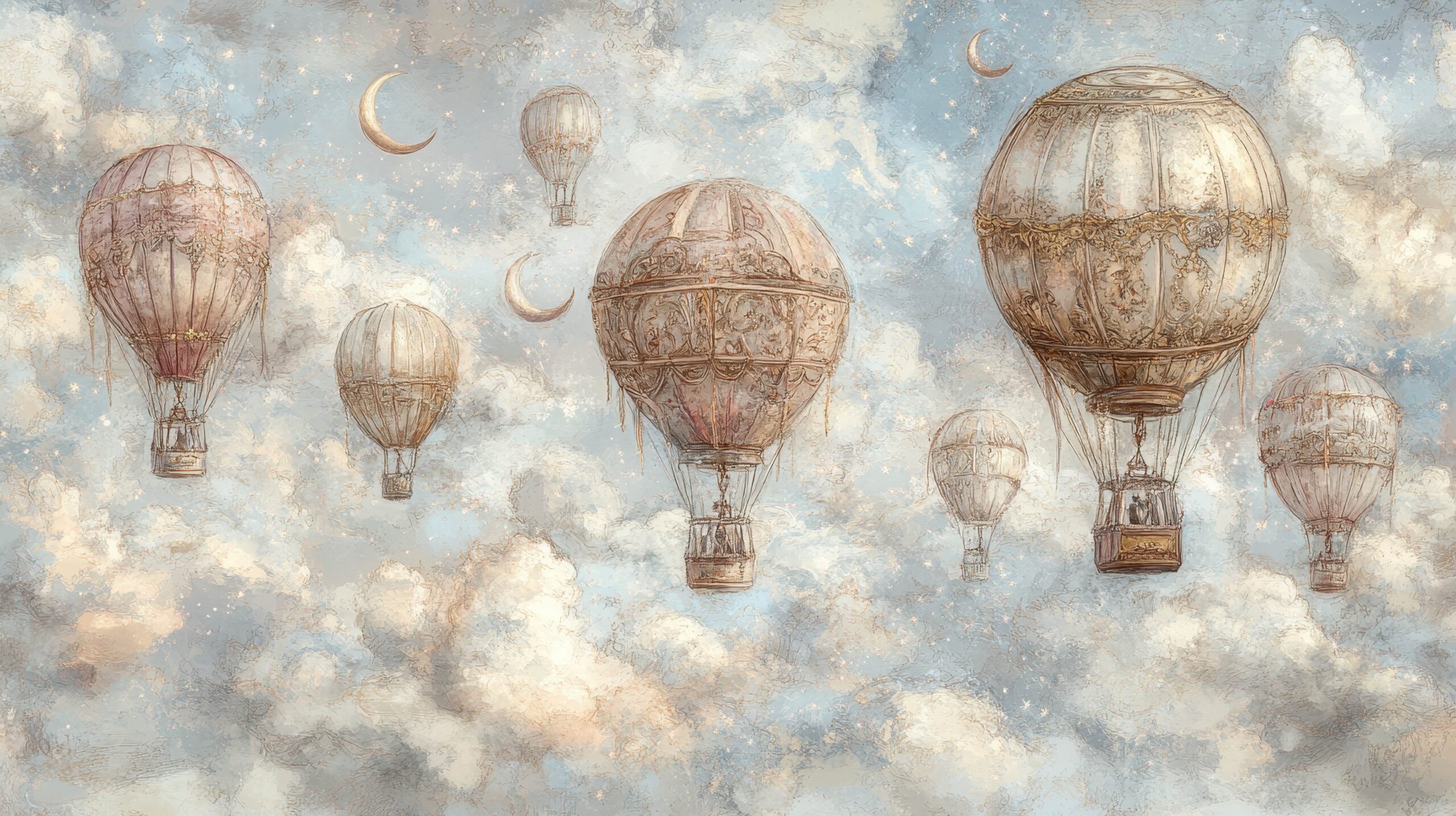 Suteikite savo interjerui unikalią atmosferą su fototapetu „Balionų sapnų dangus“. Šis subtilus, meniškas motyvas su balionais, sklandančiais tarp minkštų debesų ir mėnulių, nukels jus į ramybės, įkvėpimo ir beribės vaizduotės kupiną pasaulį. Subtilios, pastelinės spalvos sukuria harmoningą erdvę, kuri skatina atsipalaidavimą ir kūrybines mintis.