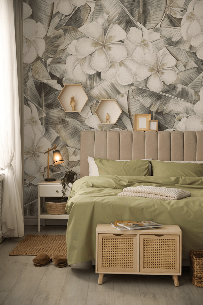 Suteikite savo namams gaivumo ir ramybės su fototapetu „Baltasis žiedas“. Šis žavus, botaninis raštas, pilnas baltų gėlių ir žalių lapų, sukuria harmoningą, natūralią atmosferą, kuri pagyvins bet kokią erdvę. Subtilūs, pasteliniai atspalviai ir kruopštus rašto detalumas sukuria ramią, subtilią atmosferą, puikiai tinkančią skandinaviško, minimalistinio ar klasikinio stiliaus interjerui.
