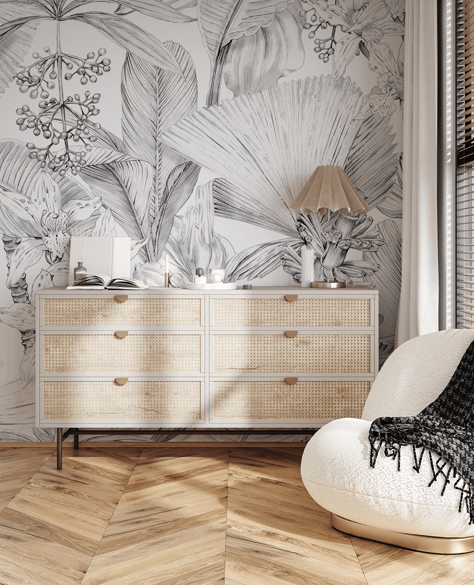 Fototapetas „Botanical Elegance“ – nesenstanti klasika, natūralus subtilumas ir rafinuotas interjero dekoravimas