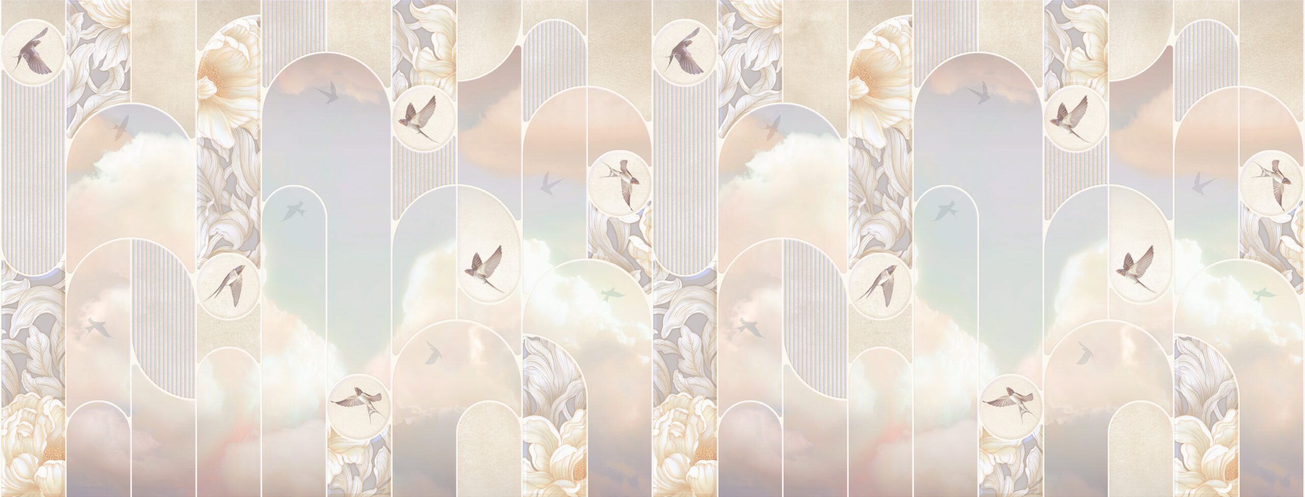 Atverkite savo namus paguodai ir lengvumui su fototapetu „Touch of Heaven“. Šis neįtikėtinai subtilus raštas, įkvėptas debesų ir pastelinių dangaus spalvų, suteikia interjerui ramybės, erdvumo ir svajingos atmosferos pojūtį. Šviesūs tonai, švelnūs spalvų perėjimai ir subtili kompozicija sukuria efektą, kuris atpalaiduoja pojūčius ir ramina protą.
