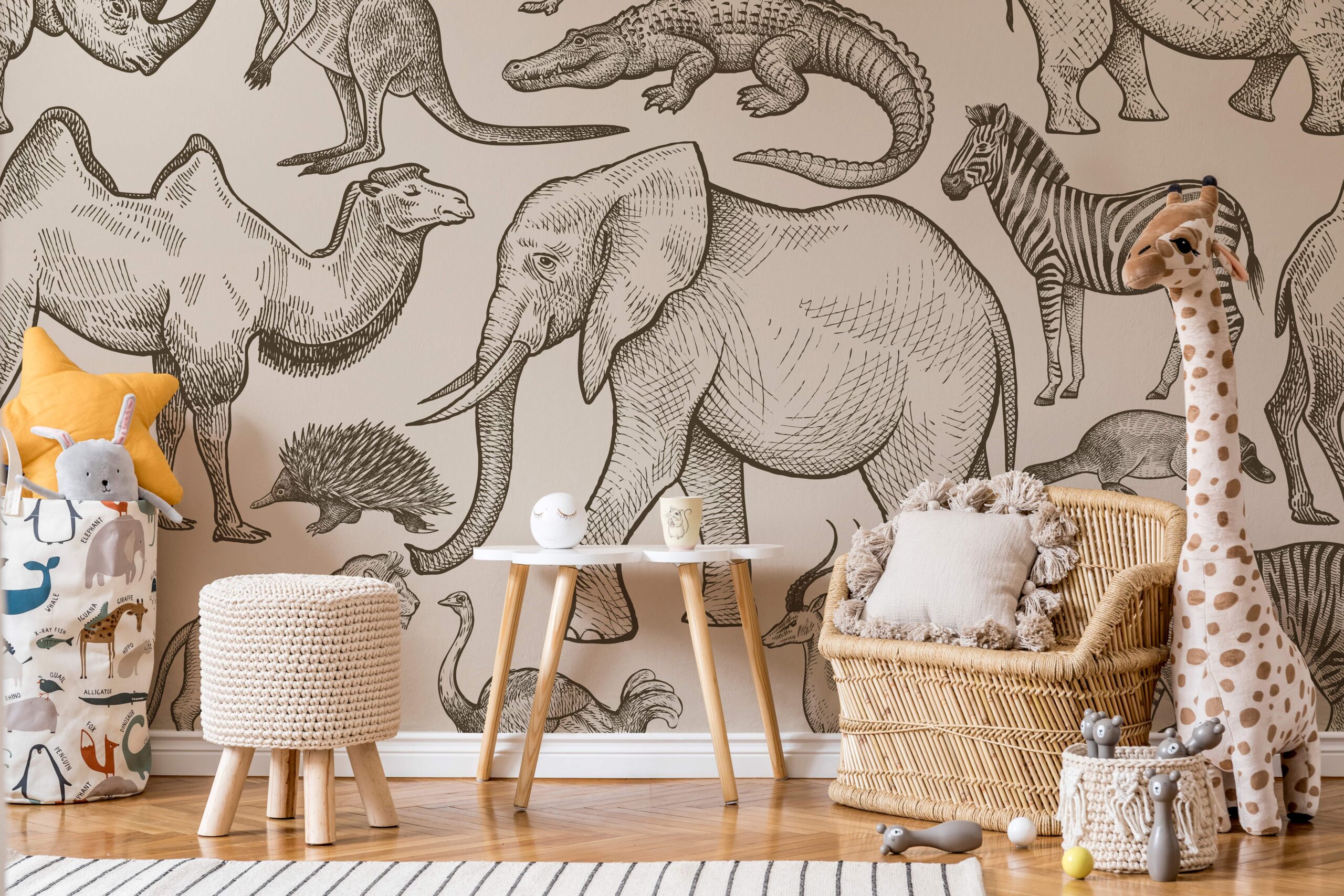 Šie fototapetai yra daugiau nei tik dekoracija – tai kvietimas žaisti, mokytis ir kasdien leistis į nuotykius su egzotiniais gyvūnais!