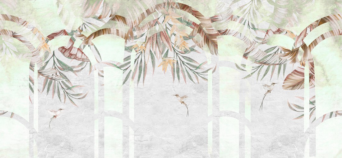 Fototapetai Egzotiniai lapai dekoratyvinėse arkose