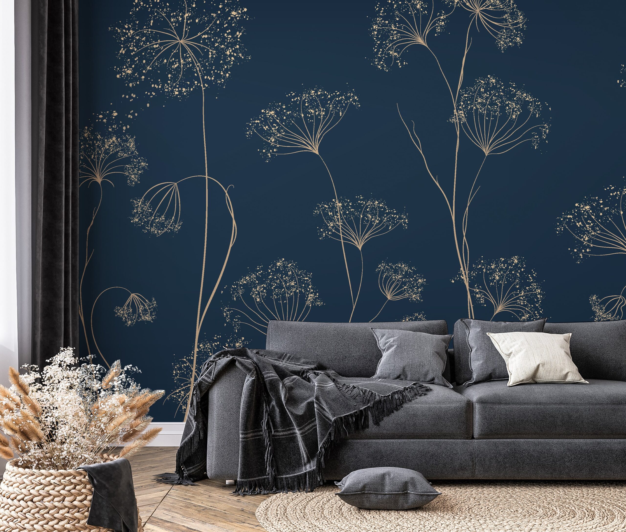 Fototapetas „Gėlių naktis“ – subtili elegancija, suteikianti jūsų interjerui ramybės ir paslapties