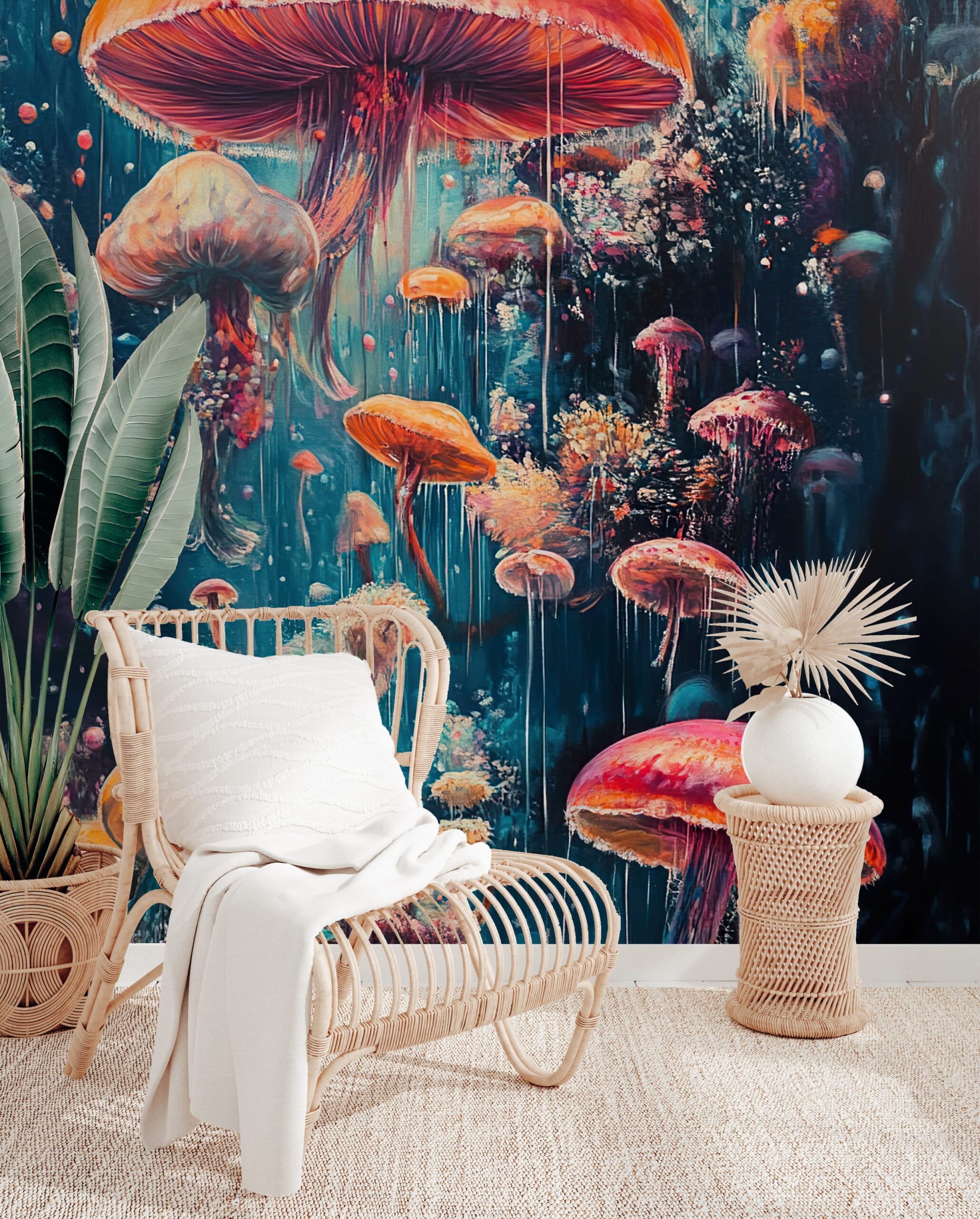 Sukurkite savo namams unikalią atmosferą su fototapetu „Grybų švytėjimas“. Šis kerintis, spalvingas raštas, įkvėptas siurrealistinio grybų pasaulio, skleidžia subtilią šviesą ir paslaptingą švytėjimą, kuris pakeis bet kokią erdvę, suteikdamas jai unikalų, menišką charakterį. Intensyvios spalvos ir dinamiškos formos puikiai papildo modernų ir eklektišką interjero dizainą.
