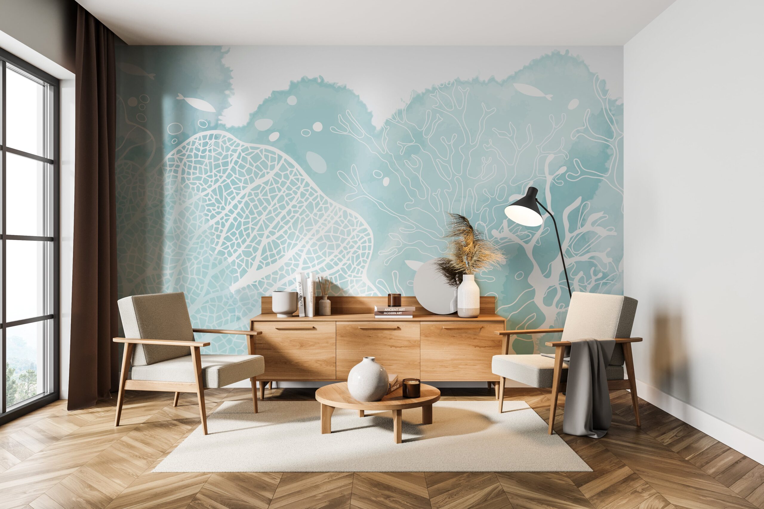 Šie fototapetai yra ne tik dekoracija – tai unikalus elementas, suteikiantis interjerui lengvumo, jūrinės auros ir savito, ramaus stiliaus.