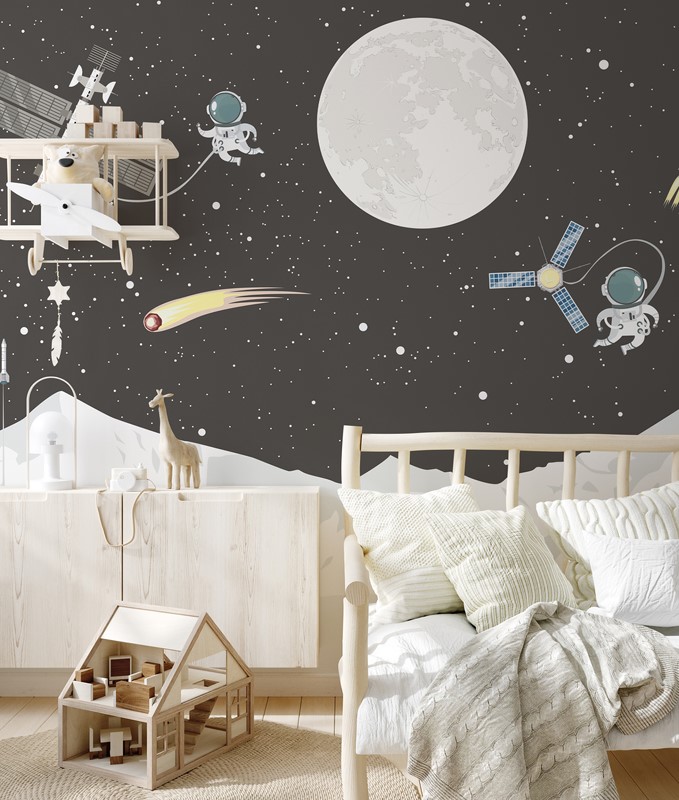 Kosmoso motyvas puikiai tinka berniukų ir mergaičių kambariams – žvaigždžių motyvai, planetos ir žvaigždėtas dangus sukuria įkvepiančią erdvę, kupiną energijos ir džiaugsmo, kuri motyvuoja vaiką svajoti apie tarpplanetines keliones.