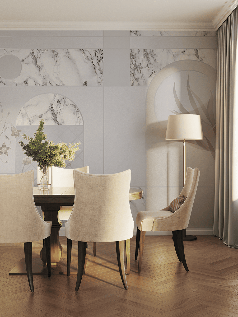 Suteikite savo namams nesenstančio žavesio su fototapetu „Marble Harmony“. Šis subtilus, marmuro įkvėptas raštas derina eleganciją su subtilia augalų grafika, sukurdamas erdvę, kupiną ramybės ir rafinuoto stiliaus. Marmuro akcentų ir subtilių augalų motyvų derinys prislopintose spalvose suteikia interjerui lengvumo ir modernaus elegancijos.