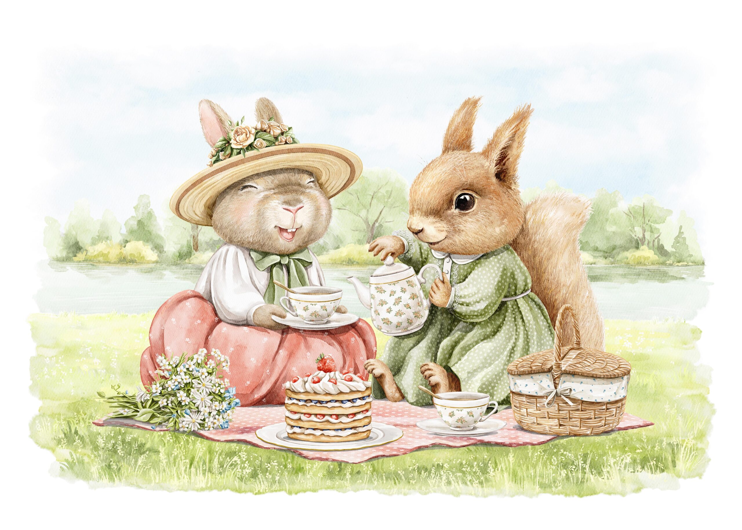 Sukurkite unikalią atmosferą savo vaiko kambaryje su fototapetu „Miško popietė su arbata“. Ši įmantriai sukurta iliustracija vaizduoja kiškio ir voverės arbatos pikniką žaliame miške, sukurdama šiltą, džiaugsmingą ir ramią atmosferą. Subtilios pastelinės spalvos ir žavingos detalės nukelia mažiausius į pasakų nuotykių pasaulį, įkvepia kūrybiškam žaidimui ir vaizduotei.