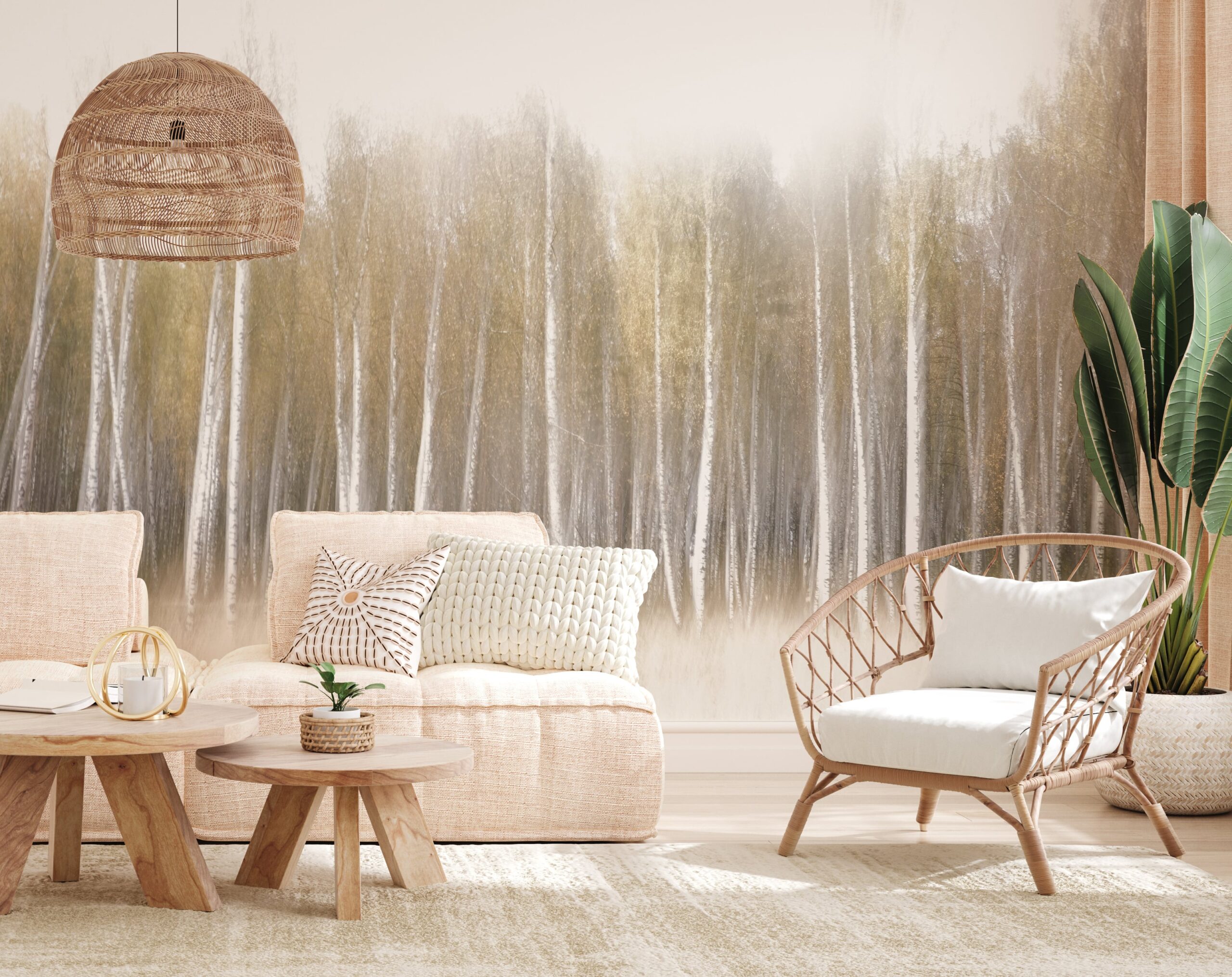 Sukurkite savo namams unikalią atmosferą su fototapetu „Miško švytėjimas“. Šis subtilus, eterinis beržų miško rūke motyvas sukuria ramybės ir paslapties aurą, puikiai papildydamas įvairius išdėstymus – nuo modernaus iki kaimiško. Šviesūs, neryškūs tonai ir natūralios miško spalvos suteikia erdvei lengvumo ir gaivumo pojūtį.