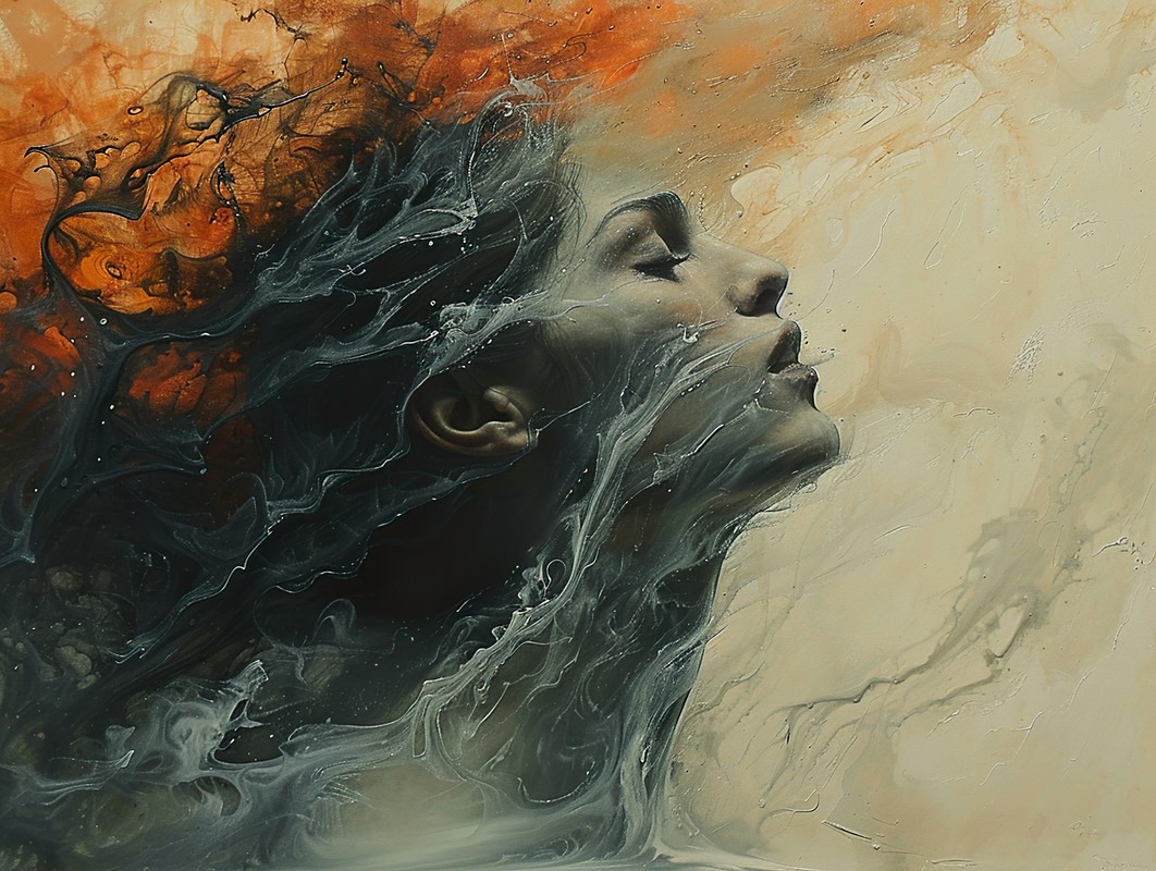Suteikite savo erdvei meno ir emocijų su fototapetu „Moters portretas abstrakcijoje“. Šis nepaprastas realistiško portreto ir sklandžios, beveik tapybiškos abstrakcijos derinys sukuria gylio, judėjimo ir vidinės stiprybės efektą. Subtilūs moters veido bruožai, panardinti į banguojančias dūmų ir spalvų struktūras, sukuria harmonijos ir rafinuotos estetikos kupiną kompoziciją.