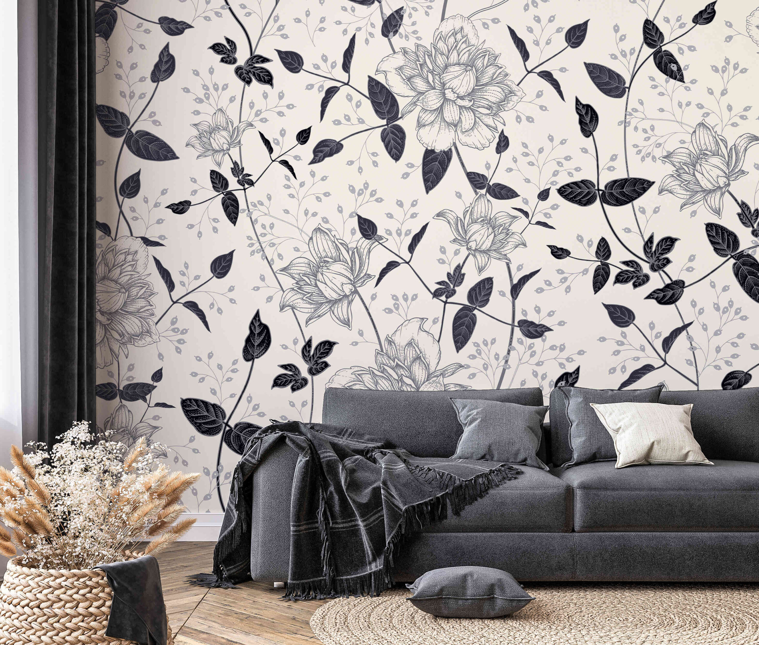 Fototapetas „Nakties žiedlapiai“ – tai unikalus raštas, kuriame dera klasikinė elegancija ir natūralių gėlių motyvų subtilumas. Juodai baltas, įmantriai išdirbtas raštas primena rankomis pieštus botaninius graviūrus, įnešdamas į interjerą ramybės, harmonijos ir nesenstančio stiliaus.