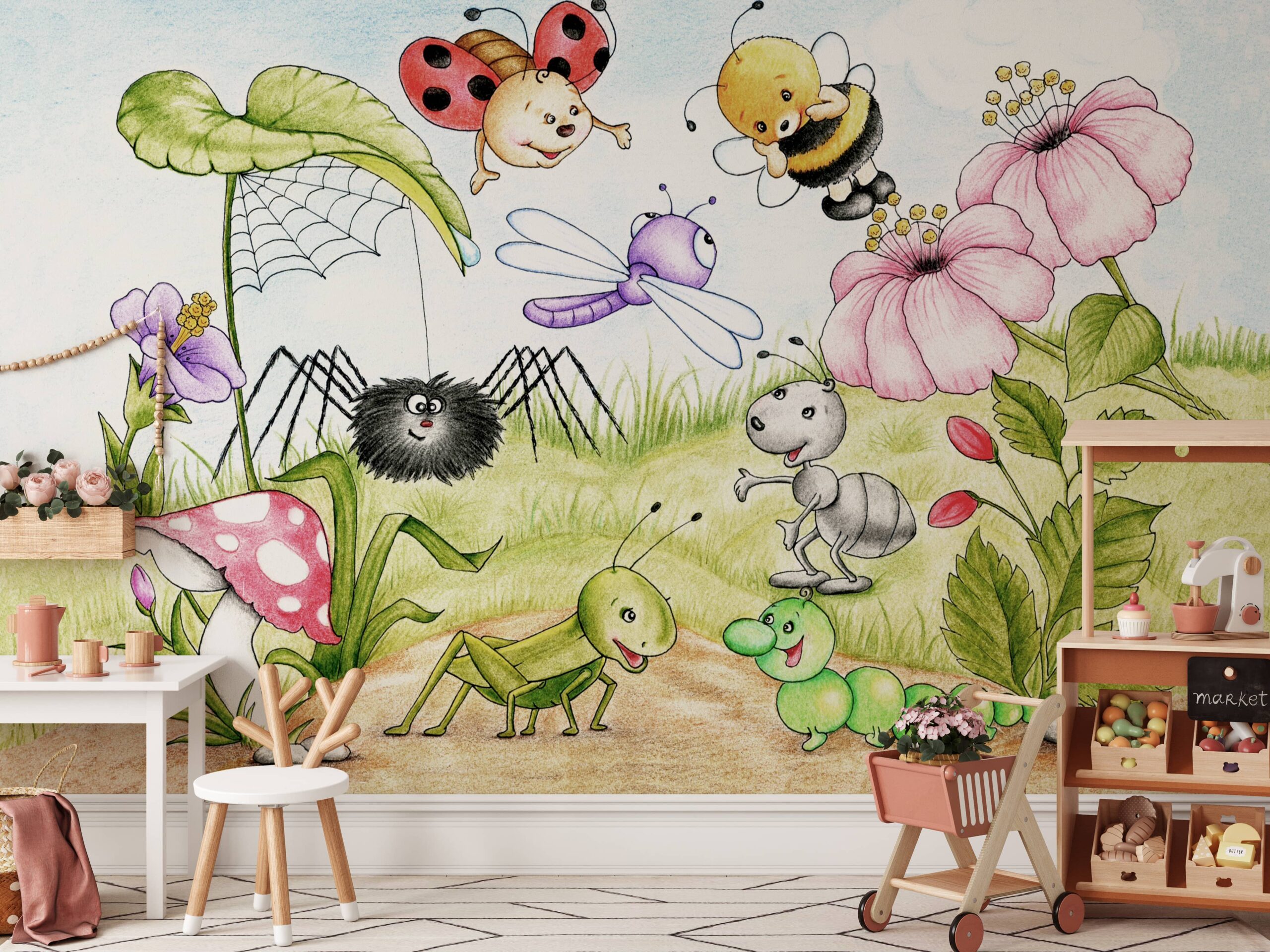 Fototapetas „Pasakų pieva“ – spalvingas nuotykis, džiaugsmingi personažai ir magiškas vabzdžių pasaulis