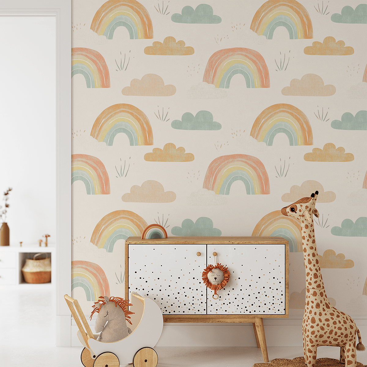 Fototapetas „Pasteliniai sapnai“ – subtili ir džiaugsminga vaiko kambario puošmena