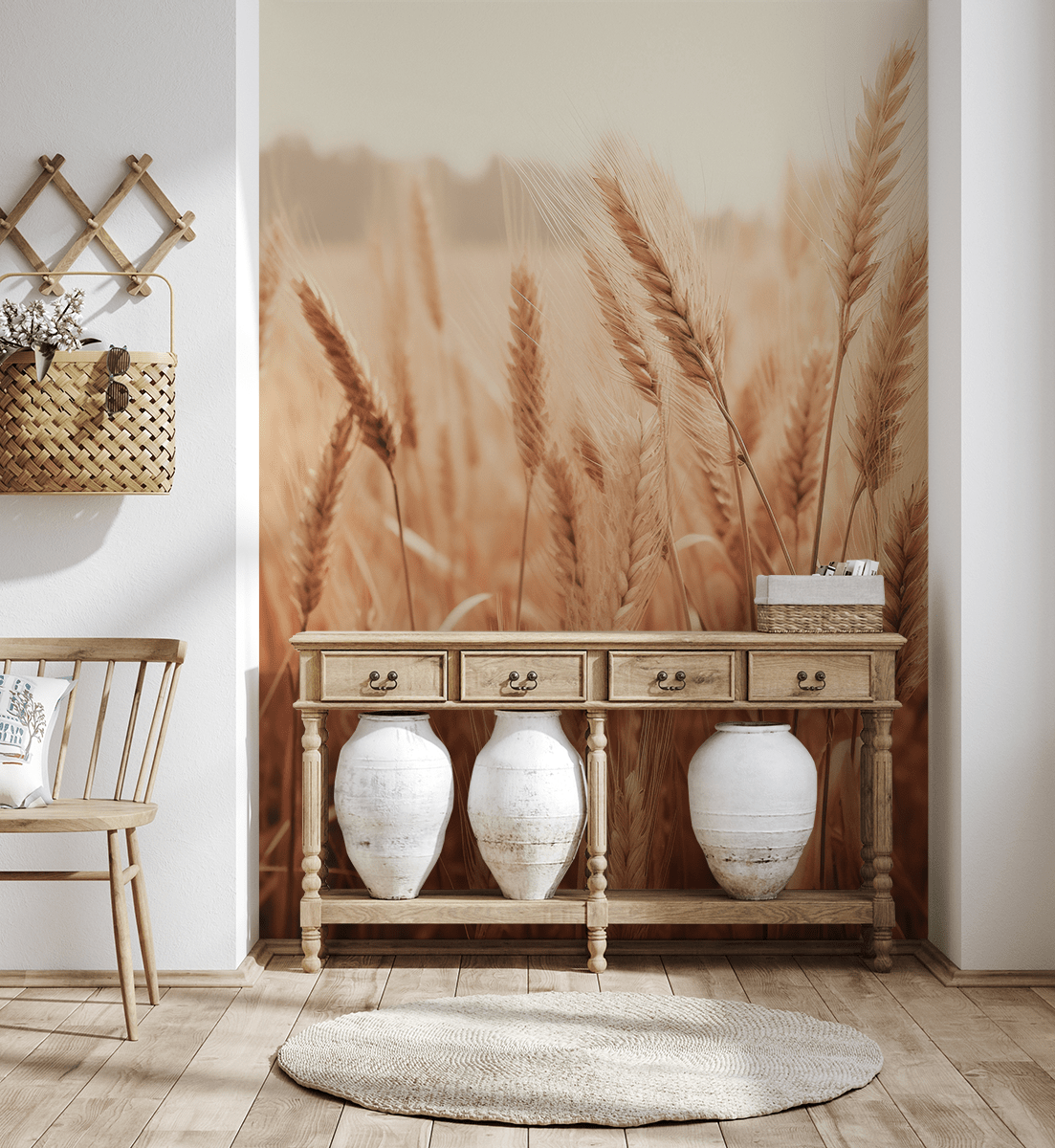 Fototapetas „Rudens javų šnabždesys“ – gamtos šiluma, švelnus judėjimas ir rami interjero harmonija