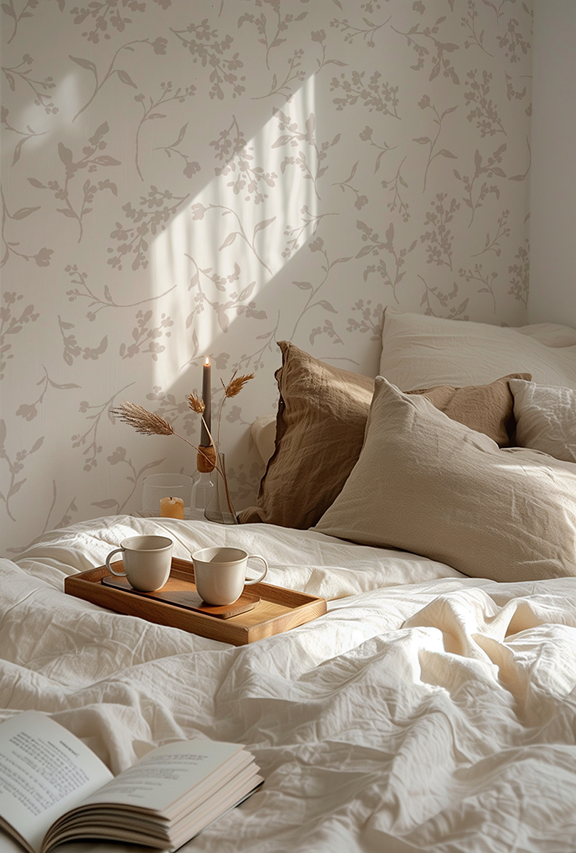 Šie fototapetai yra daugiau nei tik dekoracija – tai subtili istorija apie ryto gaivumą, tylą ir grožį, užfiksuotą paprasčiausiose gamtos formose.