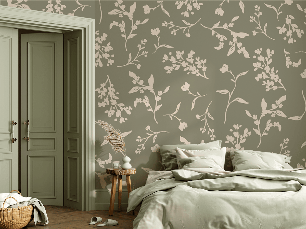 Sukurkite ramybės ir tylos atmosferą savo namuose su fototapetu „Šakelių šnabždesys“. Šis subtilus raštas su ryškiais botaniniais motyvais matiniame fone prislopintoje žalioje spalvoje sukuria unikalią kompoziciją, įkvėptą gamtos ramybės. Rankomis pieštos šakelės ir subtilios gėlės suteikia erdvei lengvumo ir natūralaus subtilumo.