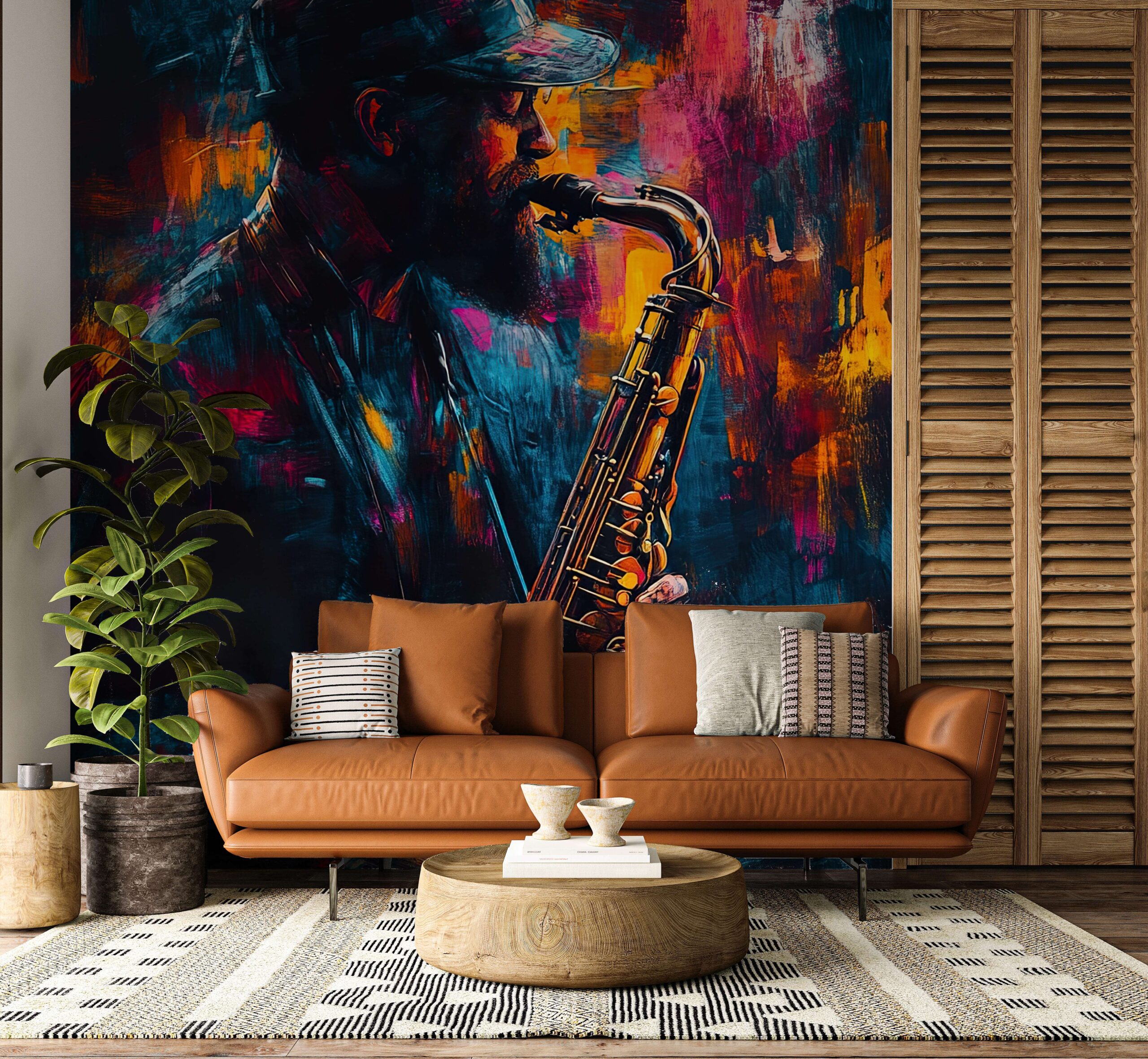 Fototapetas „Sielos ritmai“ – dinamiška išraiška, džiazo atmosfera ir gili emocijų išraiška