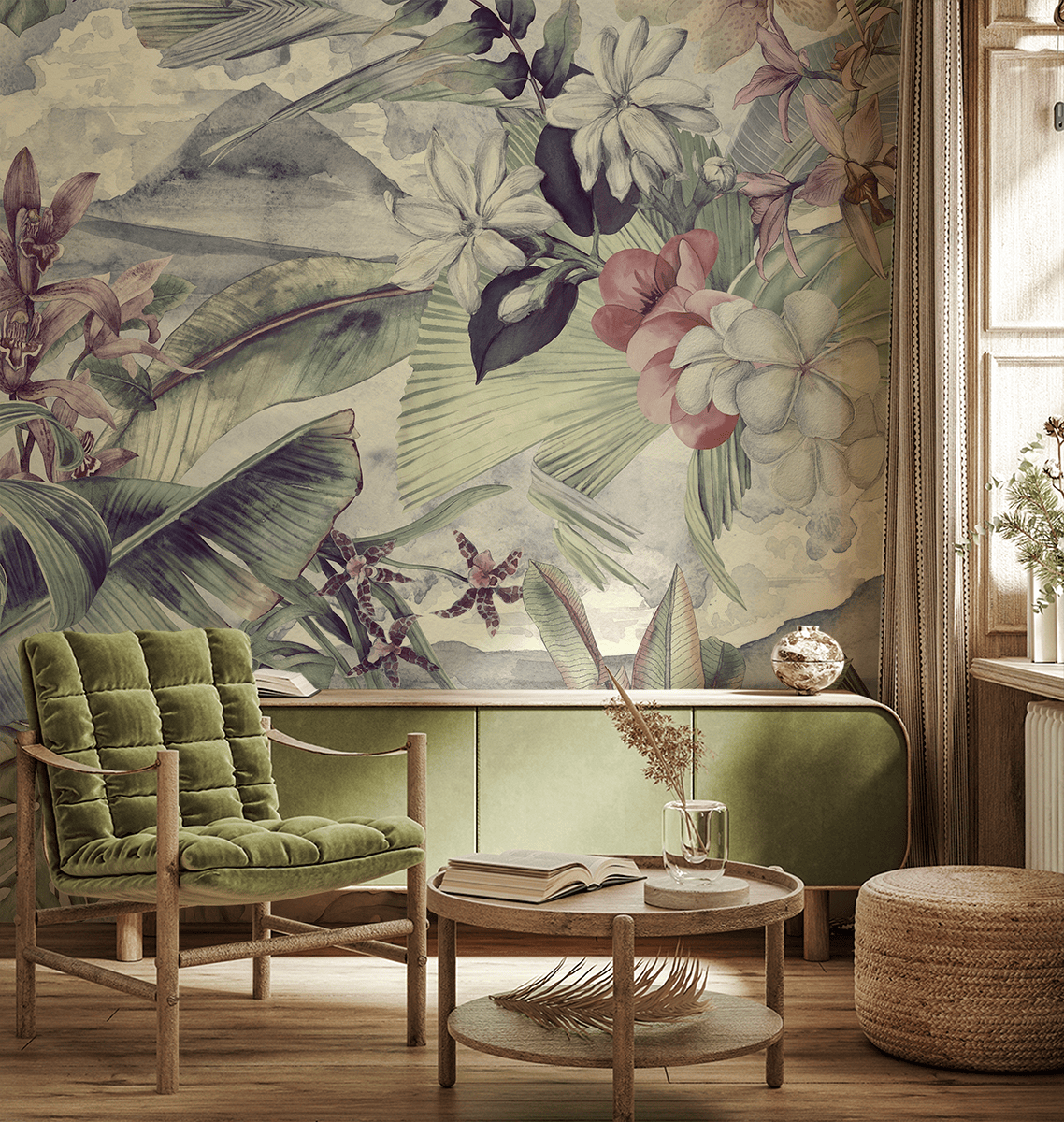 Fototapetas „Tropikų dvelksmas“ – egzotiškas lengvumas, natūrali harmonija ir tropinis interjero dekoravimas