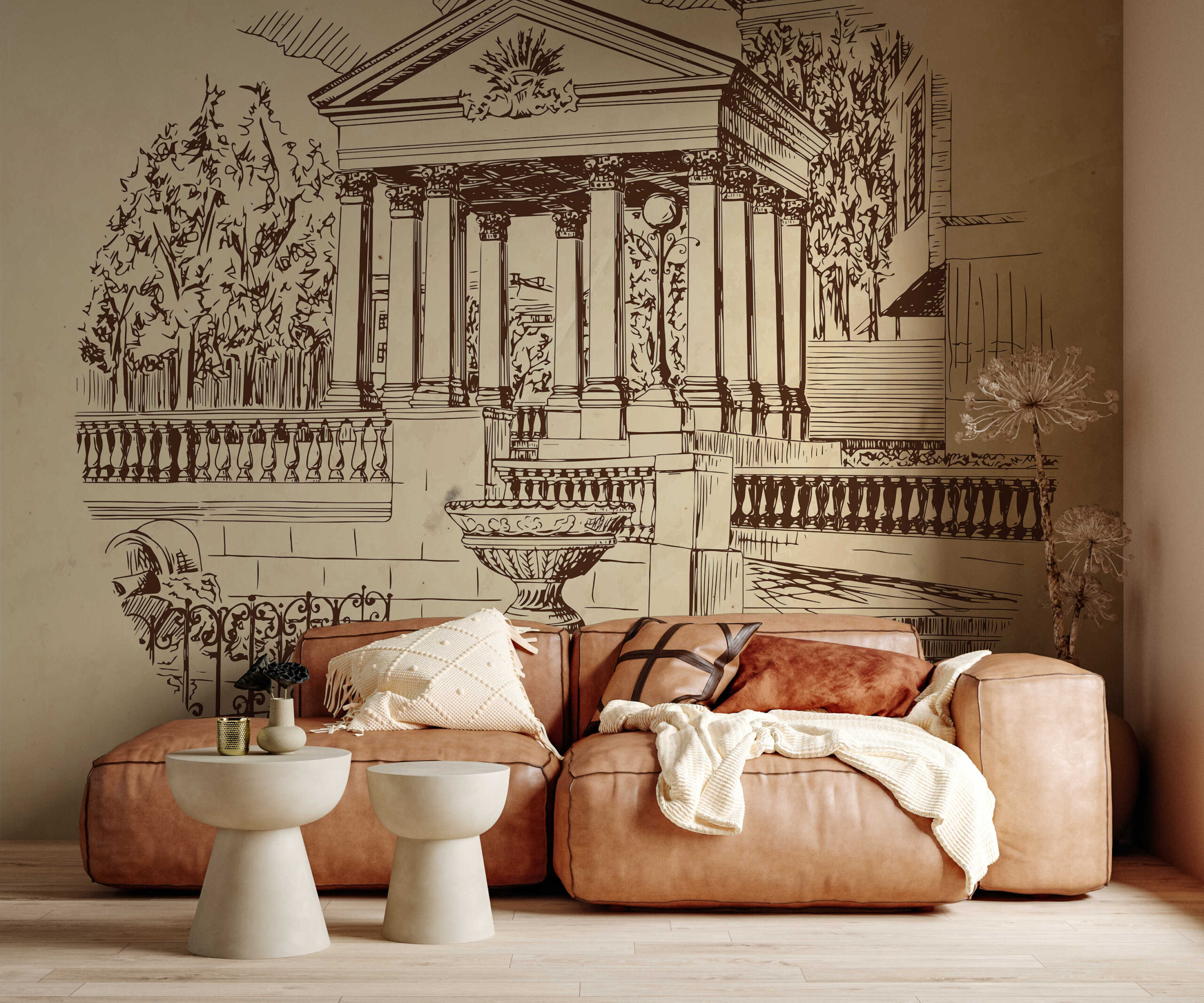 Atraskite praeities magiją su fototapetu „Tylos šventykla“. Šis meniškas klasikinio pastato su kolonomis, akmeniniu fontanu ir subtiliomis architektūrinėmis detalėmis piešinys nukels jus į senovinio elegancijos ir ramybės pasaulį. Subtilios linijos, prislopintos spalvos ir subalansuota kompozicija paverčia šiuos fototapetus unikalia bet kokio interjero puošmena.