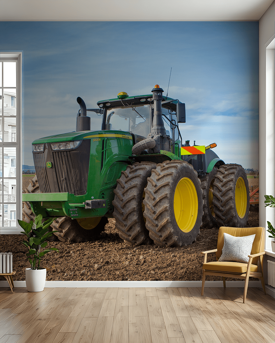 Sukurkite dinamišką ir įkvepiančią atmosferą savo interjerui su fototapetu „Žaliasis herojus“. Šis įspūdingas motyvas vaizduoja galingą, žalią traktorių didžiulių laukų fone, simbolizuojantį galią, atkaklumą ir artumą gamtai. Intensyvi žaluma ir detalūs elementai atspindi technikos galią ir kaimo kraštovaizdžio žavesį, sukurdami gyvybės ir energijos kupiną interjerą.