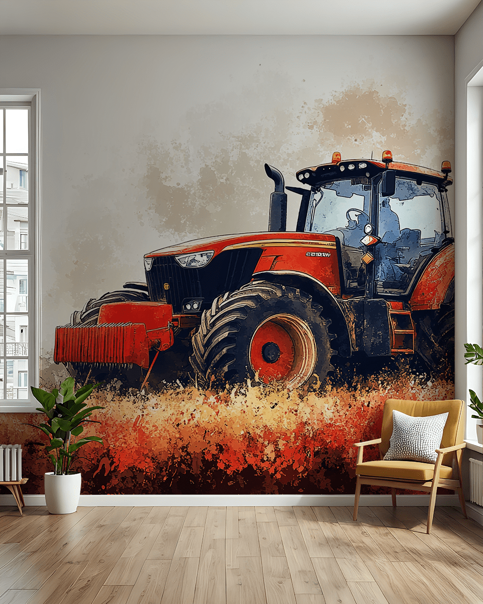Įneškite į savo namus tikrąją ūkio darbų energiją su fototapetu „Žemės ūkio galia“. Šis ryškus motyvas, vaizduojantis judantį raudoną traktorių, yra tobulas modernios grafikos ir kaimiškos atmosferos derinys. Ryškios spalvos, dinamiška kompozicija ir realistiškos detalės sukuria gyvybės kupiną vaizdą, simbolizuojantį jėgą, atkaklumą ir artumą gamtai.