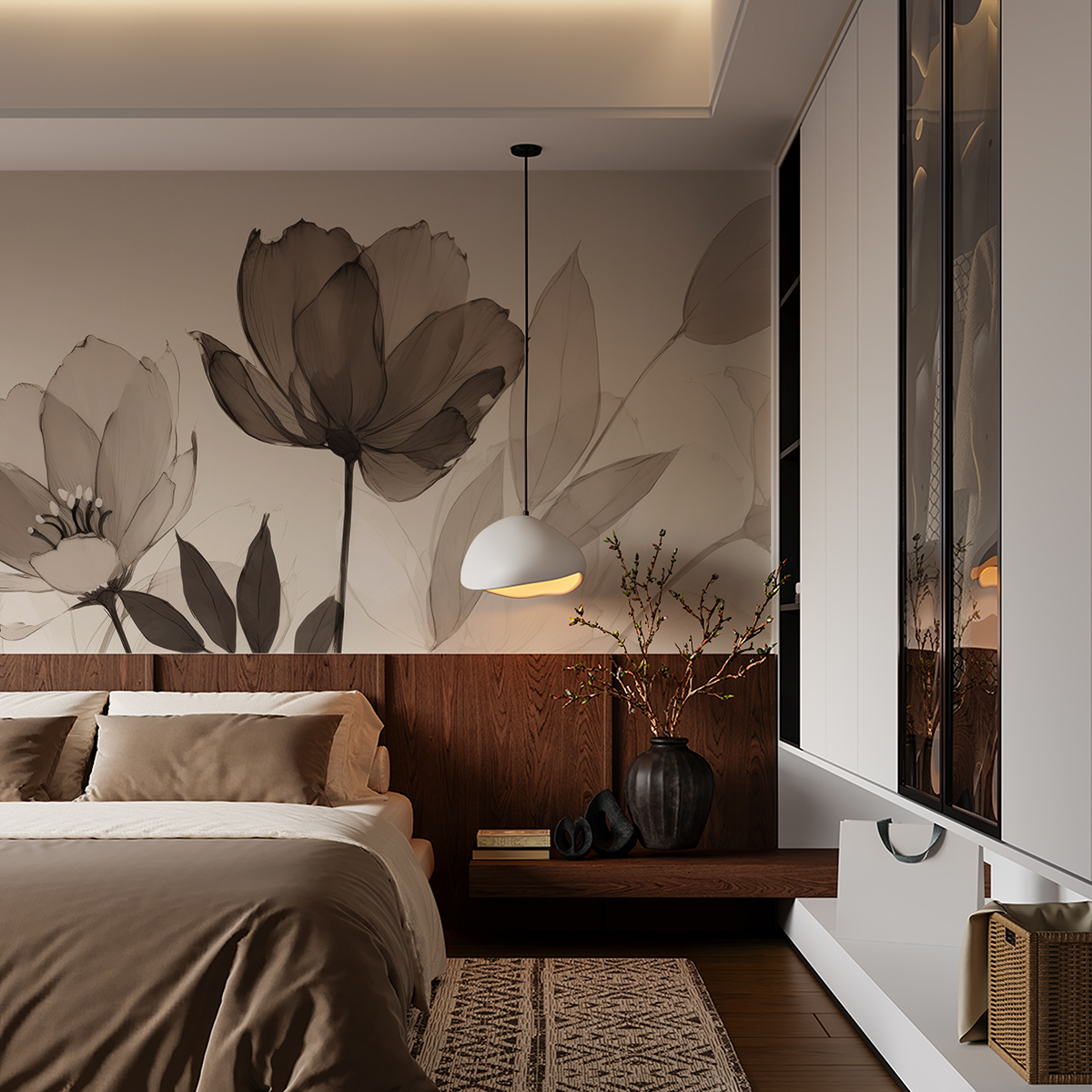 Įneškite į savo interjerą raminantį gamtos ritmą su fototapetu „Žiedlapių tyla“. Eterinis gėlių motyvas, prislopintų, sepijos atspalvių, sukuria unikalią kompoziciją, kuri džiugina savo lengvumu ir ramybe. Švelnios linijos ir skaidrūs sluoksniai primena akvarelės eskizą, suteikiantys erdvei rafinuotą, beveik poetinį charakterį.