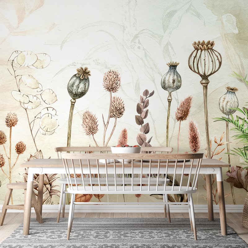 Fototapetas Žolelių sodas – tai subtilus motyvas, įkvėptas gamtos ir aromatinių augalų, kuris interjerui suteikia ramybės, gaivumo ir harmonijos. Subtilūs žolelių raštai ant sienos sukuria jaukią ir atpalaiduojančią atmosferą, puikiai tinkančią virtuvei, svetainei, valgomajam ar biurui. Šis natūralus motyvas pagyvina interjerą ir suteikia jam **lengvumo bei elegancijos**.