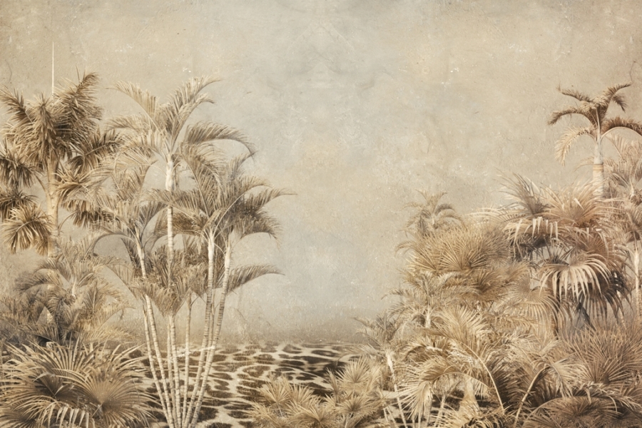 Atogrąžų džiunglės sepijos spalvomis – neįprasta tema, kuri nukels jus į egzotiškas vietas neišeinant iš namų. Šioje freskoje puikiai perteikta atogrąžų miškams būdinga augmenijos gausa ir įvairovė bei spalvų intensyvumas.