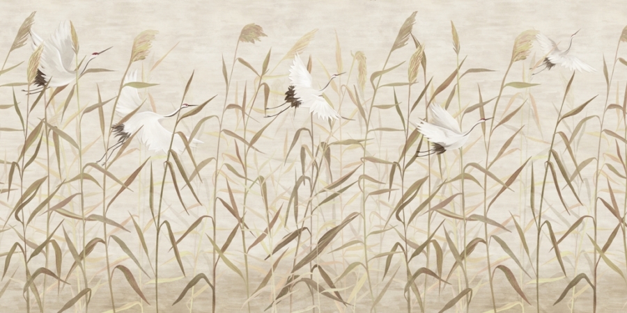 Elegantiška sieninė tapyba, kuria galima papuošti bet kurio kambario sieną. Jis puikiai tiks gyvenamajame kambaryje ir gali būti miegamojo bei prieškambario dalis. Vaizduojamos išskrendančios gervės tarp žolių. Jis yra itin lengvas, stilingas, elegantiškas. Jame vyrauja santūrios spalvos, todėl galima rinktis kitus interjero dizaino elementus. Galite nesunkiai pasirinkti aksesuarus, kurie prie jo labai tinka. Tai sieninė tapyba, kuri suteiks jūsų interjerui ypatingumo.