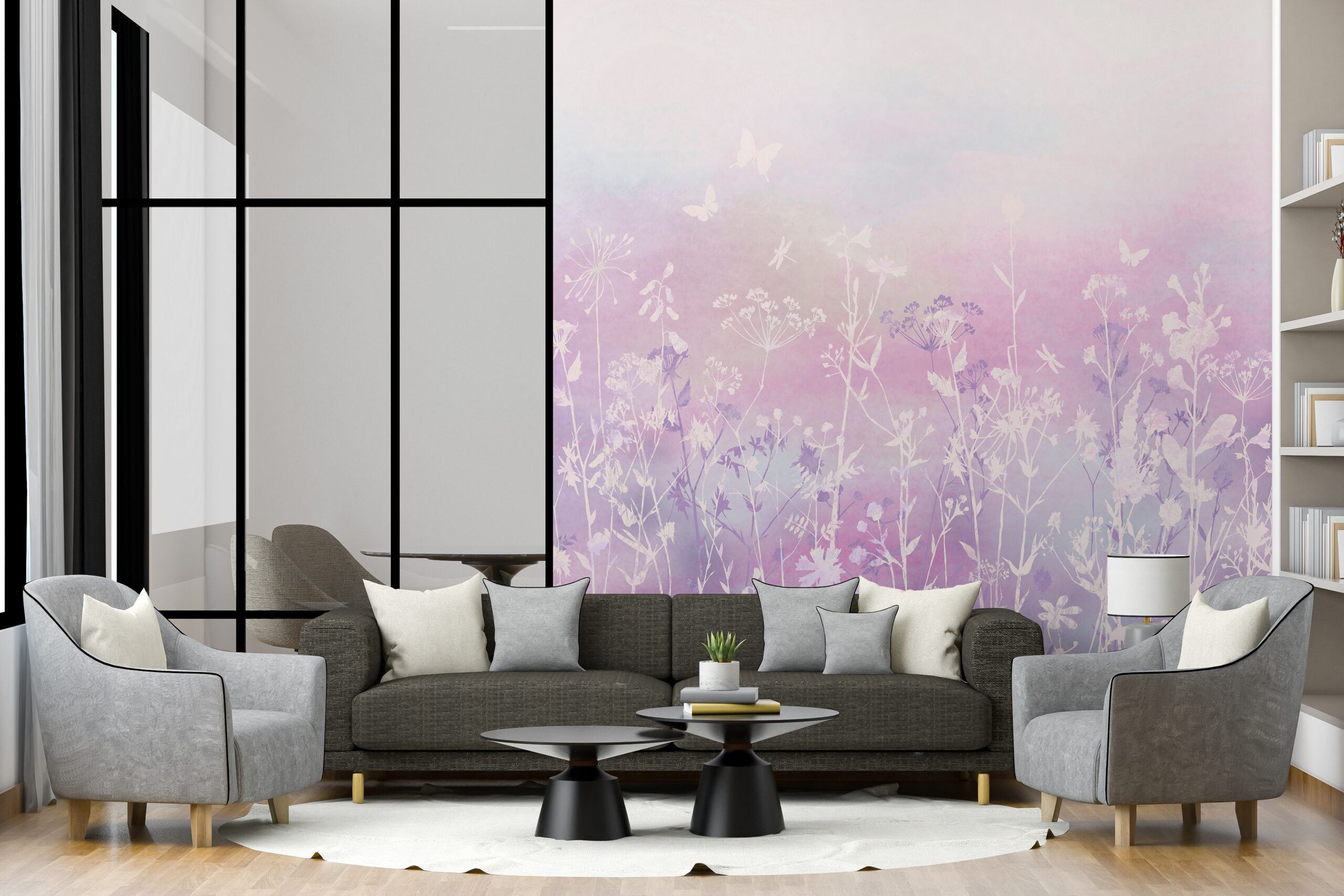 Nuotrauka, kurioje vaizduojamos rausvų atspalvių lauko gėlės, puikiai dera prie įvairių dizaino stilių – nuo klasikinio iki modernaus. Sukurkite originalią erdvę, kuri pažadins pojūčius ir suteiks jūsų namams gaivumo, naudodami šią sienų freską.