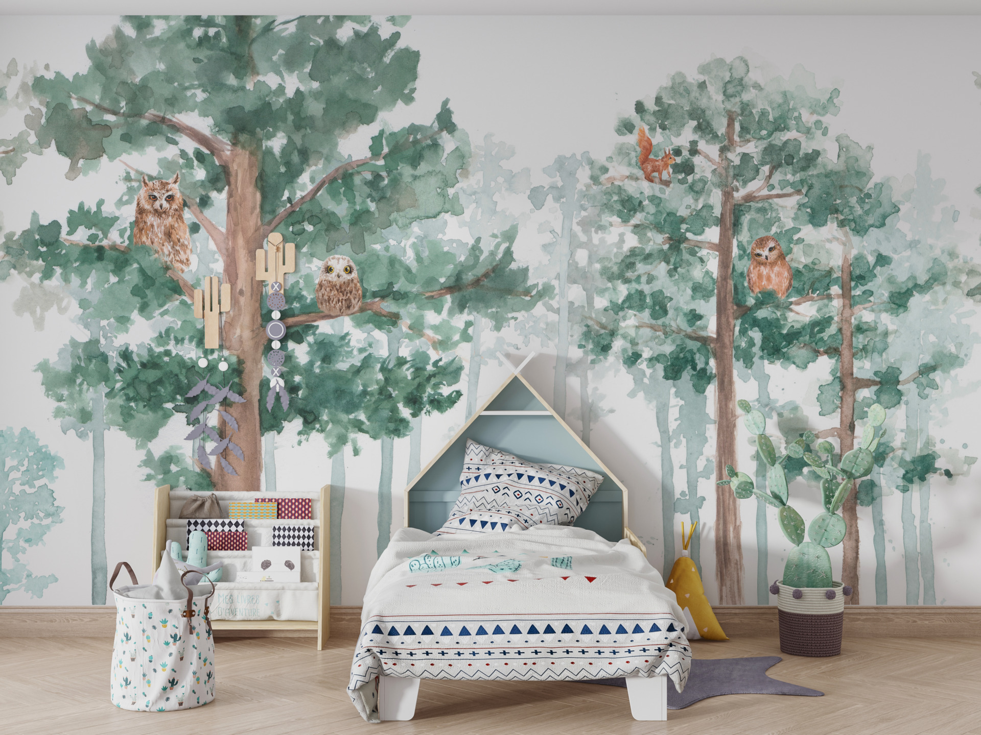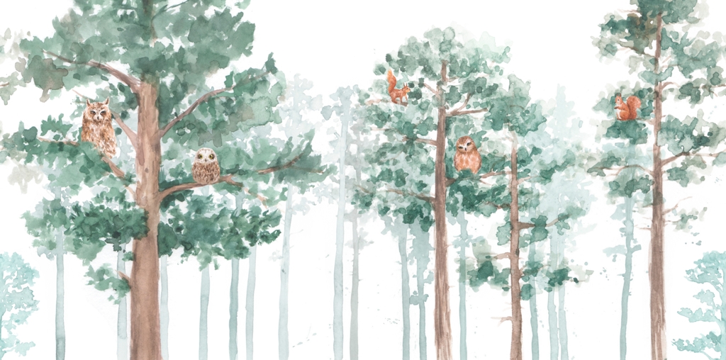 Sugrąžinkite gamtą į savo namus su šia nuostabia sienų tapyba, kuri nukels jus į stebuklingą miško pelėdų ir medžių pasaulį.