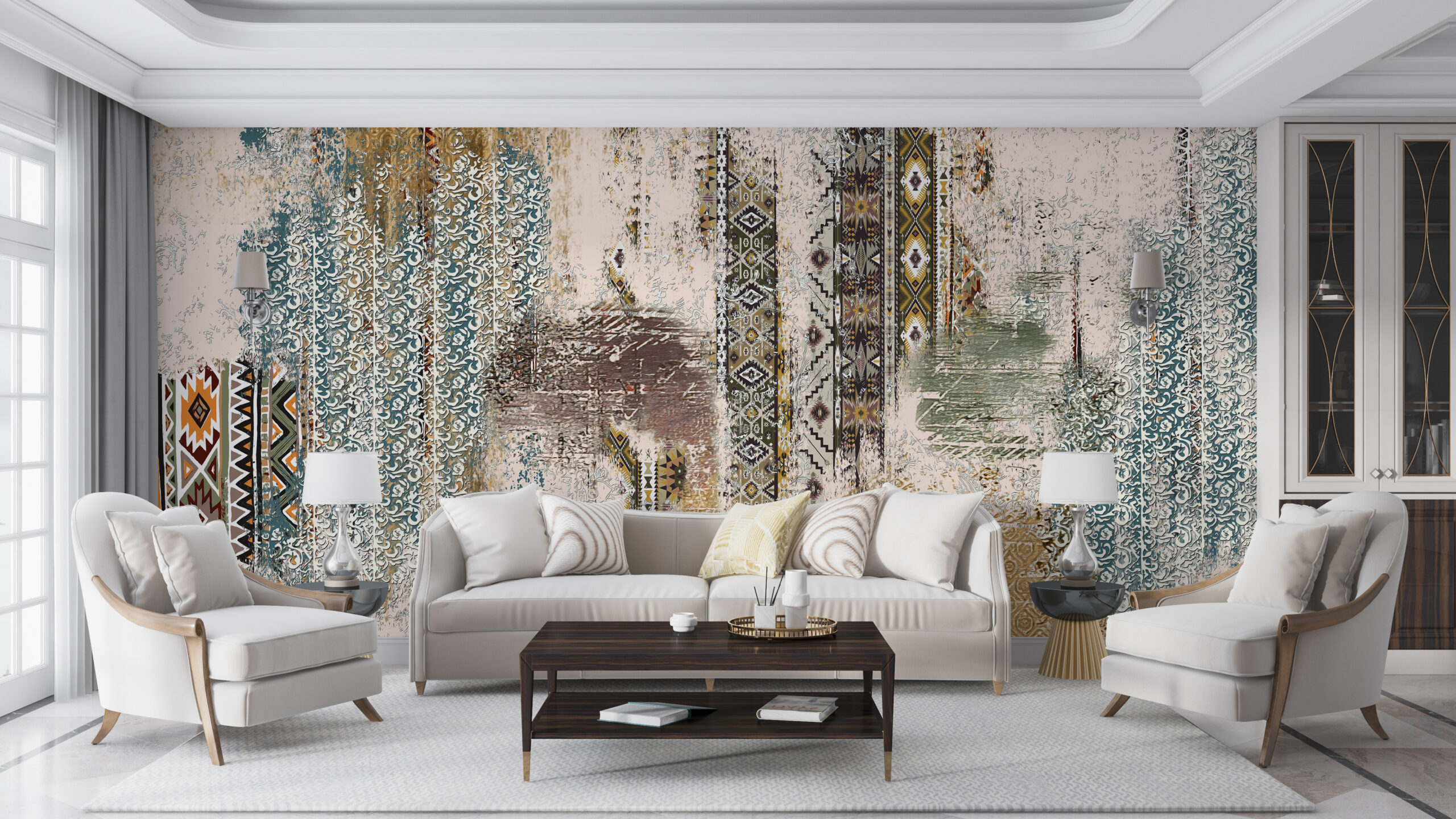 Pateiktoje sieninėje tapyboje vaizduojamas senovės mozaikų įkvėptas raštas, kuris puikiai tinka ieškantiems neįprasto interjero dizaino. Dėl unikalaus rašto ir spalvų kambarys įgaus naują charakterį ir atgis.