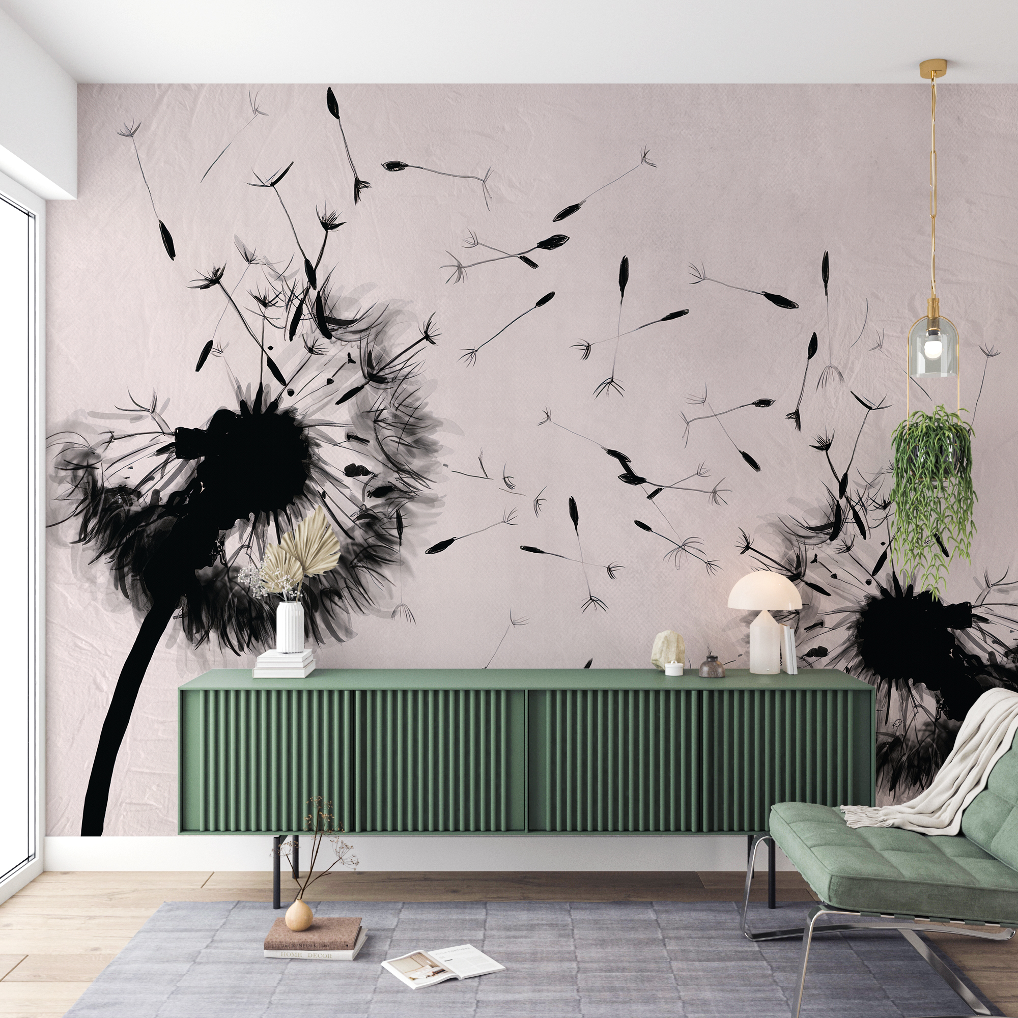 Sienų freska „Juodieji pūstuvai” – tai neįprastas subtilumo ir elegancijos derinys, kuris suteiks jūsų interjerui unikalumo. Juodame fone esantys pripučiami baldai – tai motyvas, kuris tinka ir moderniai, ir klasikinei aplinkai.
