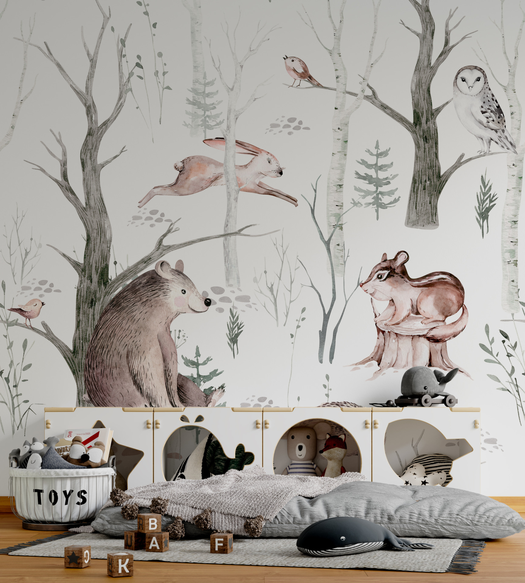 Šiame žaviame sienų tapybos paveiksle vaizduojamas spalvingas miško gyvūnų pasaulis, kuris pagyvins bet kokį interjerą. Jis puikiai tinka ne tik vaiko kambariui, bet ir svetainei, miegamajam ar biurui. Dėl tikroviškos grafikos pasijusite taip, tarsi būtumėte persikėlę tiesiai į stebuklingą mišką, pilną įvairiausių būtybių.