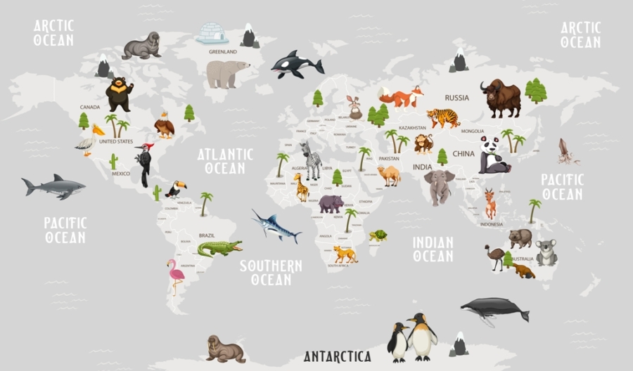 Su šia nuostabia sienų tapyba persikelkite į įspūdingą gyvūnų pasaulį įvairiuose žemynuose. Nuo laukinių liūtų Afrikos savanose iki žavių kengūrų Australijos krūmynuose – šis sieninis paveikslas nukels jus į tolimiausius mūsų planetos kampelius.