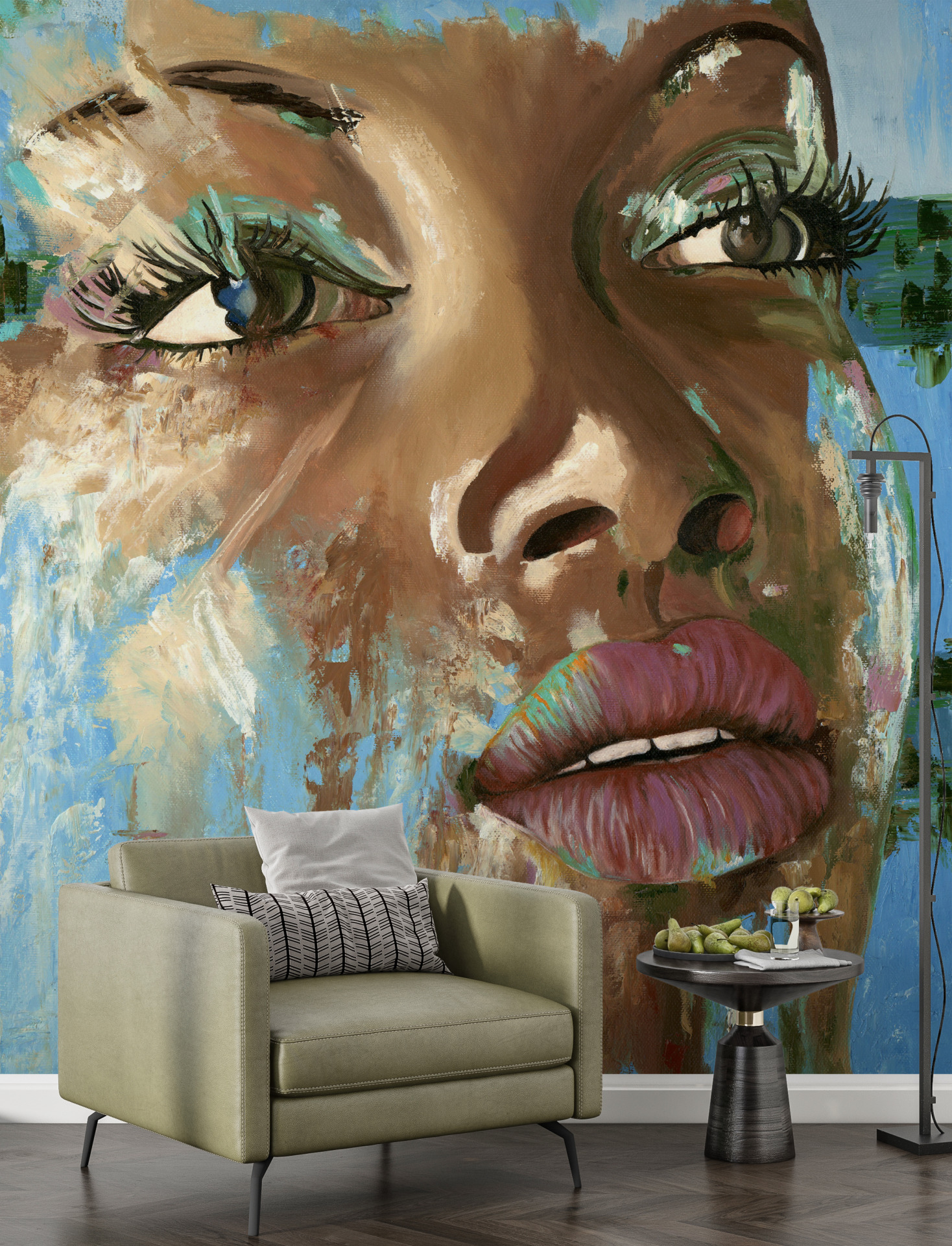 Mūsų freskoje pavaizduota graži tamsiaodė mergaitė, kuri spinduliuoja stiprybę, pasitikėjimą savimi ir grožį. Tai puikus būdas interjerui suteikti charakterio ir unikalaus stiliaus.