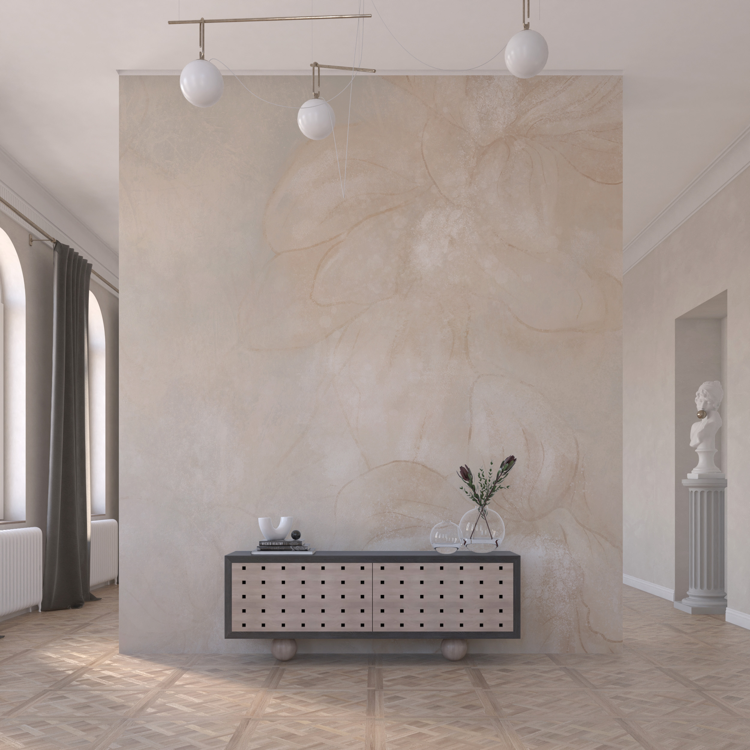 Iš pirmo žvilgsnio gali pasirodyti, kad šioje sieninėje freskoje nėra jokios gėlės. Tačiau atidžiau įsižiūrėję pastebėsite subtilias linijas ir formas, kurios sukuria subtilų gėlės atvaizdą, paslėptą abstrakčiame rašte.