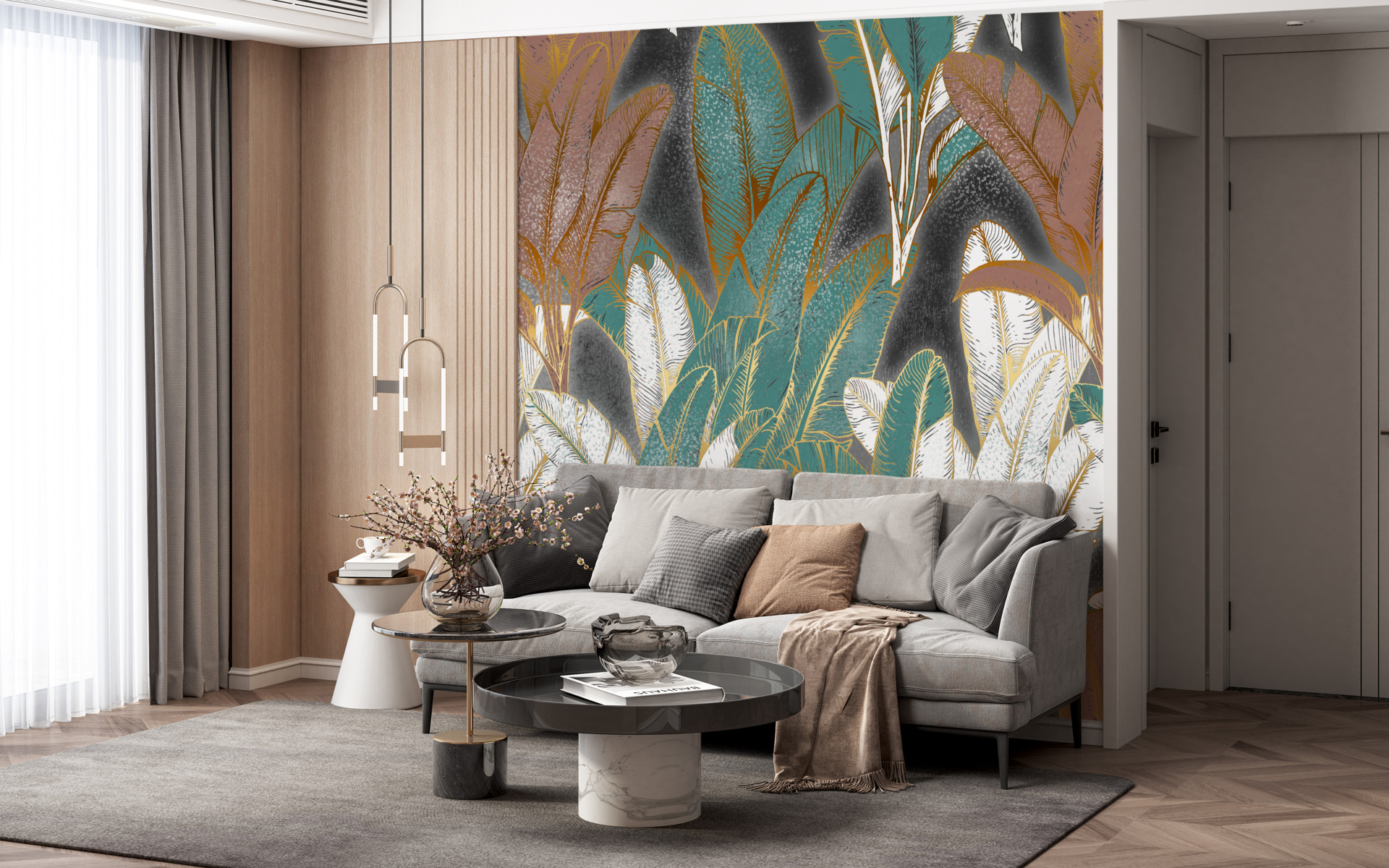 - 3D, ATOGRĄŽŲ LAPAI, Fototapetai, GAMTA, GYVŪNAI, Kambariui, MIEGAMAJAM, SALONUI