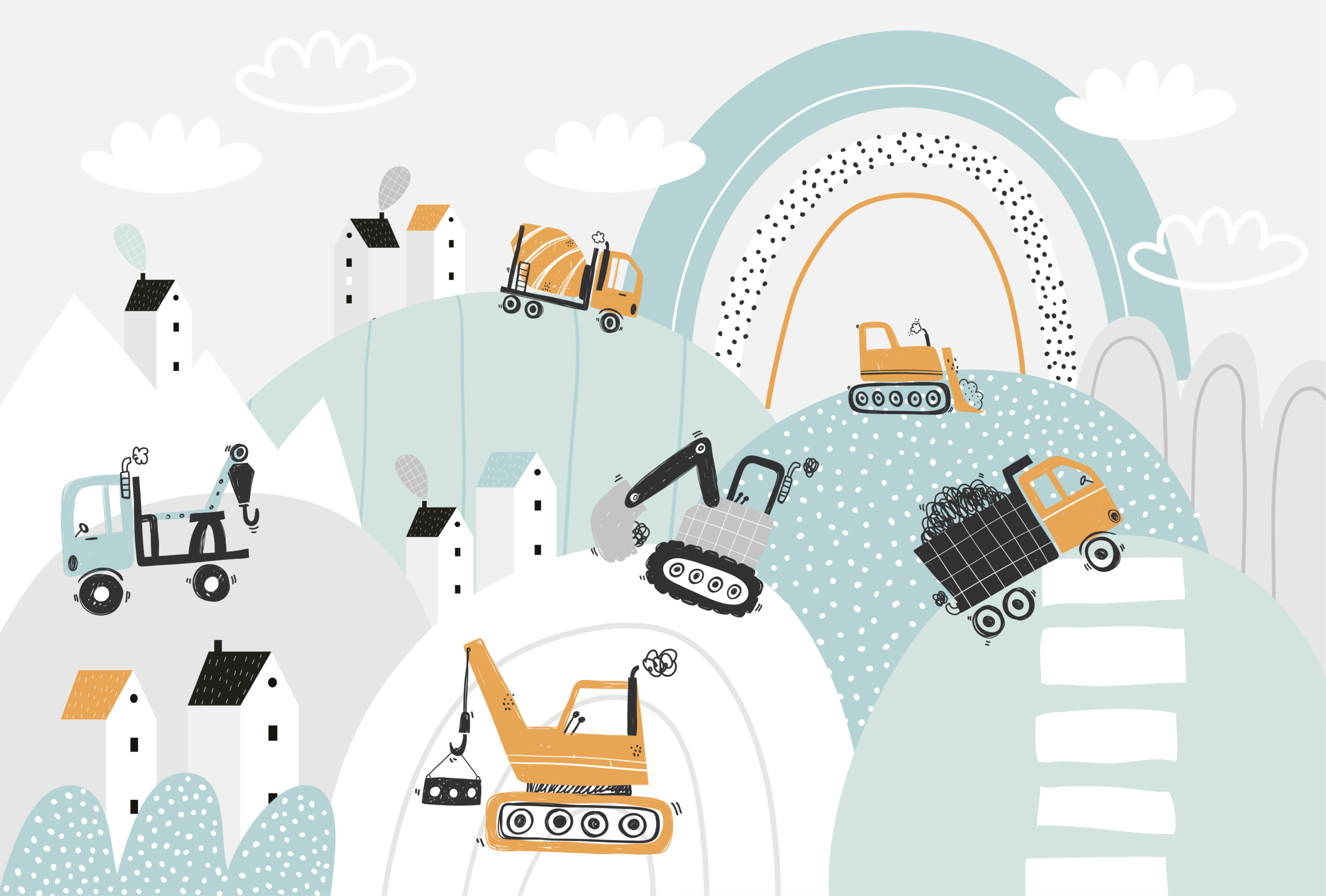 Freska „Statybinės transporto priemonės” – statybų pasaulis jūsų vaiko kambaryje